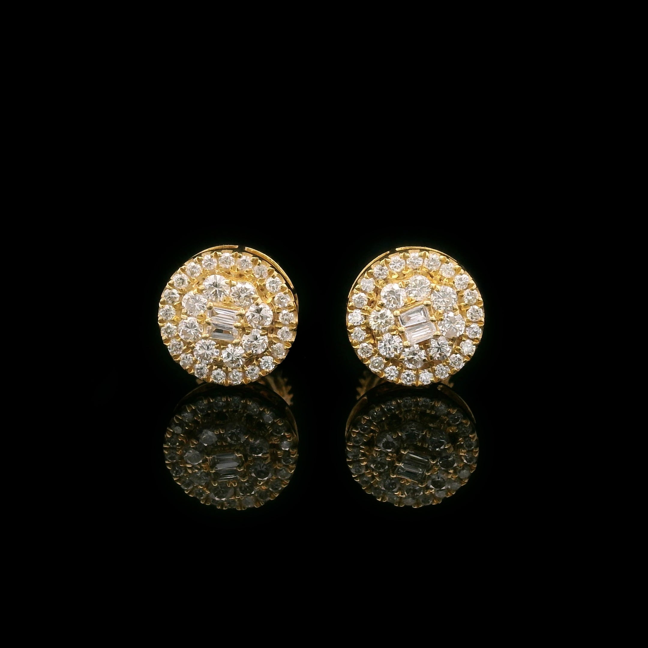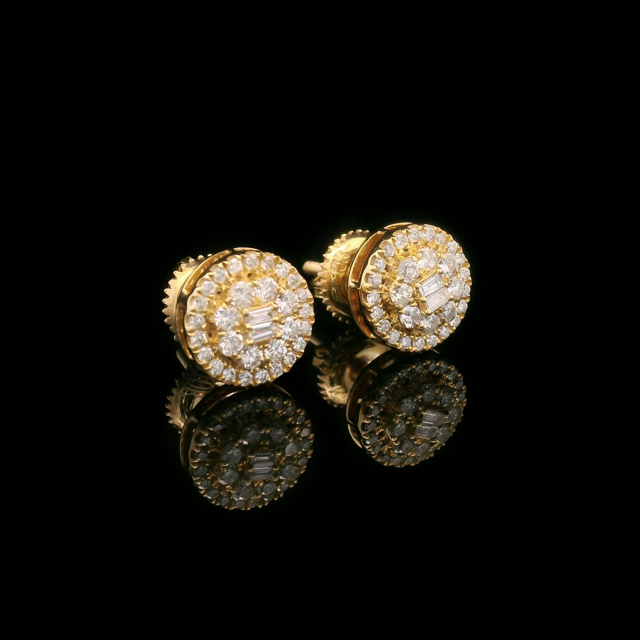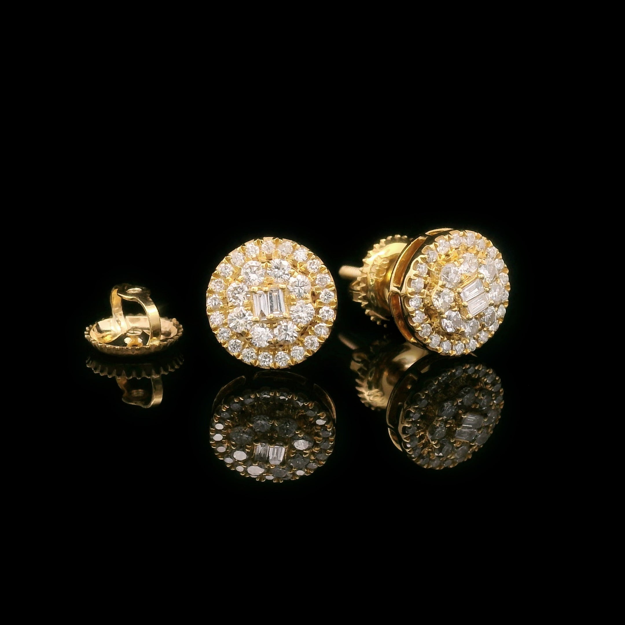 Baguette & Round Diamond Round Screw Back Earrings 14k Yellow Gold 0.92ctw$1,200.00