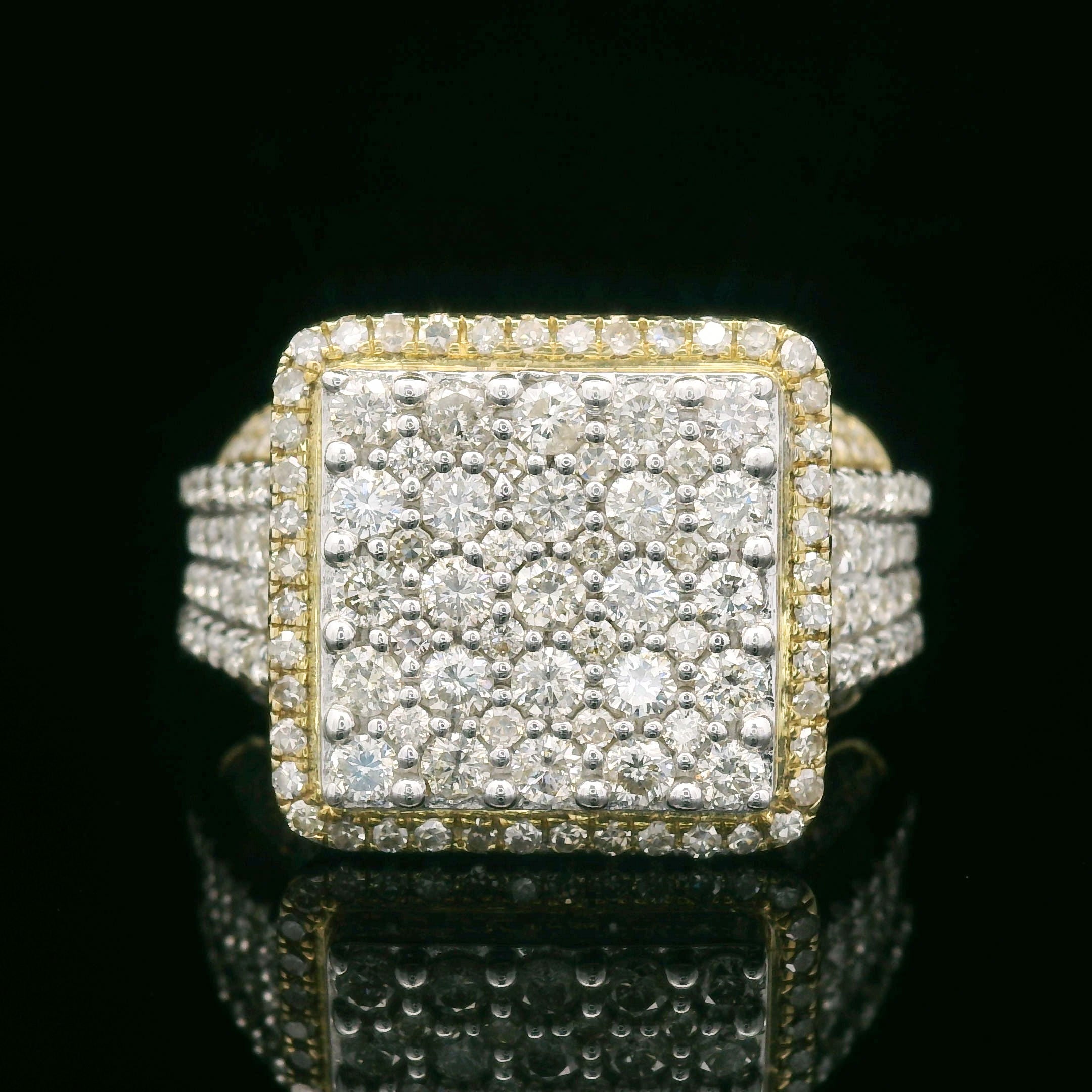 Diamond Square Cluster with Triple Halo Engagement Ring 10k Yellow Gold 0.55ctw$725.00