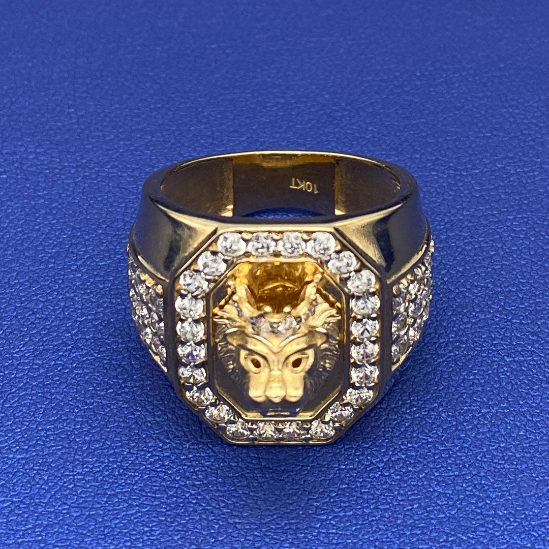 10k CZ Lion Head Round Cuban Link Border Ring$1,100.00