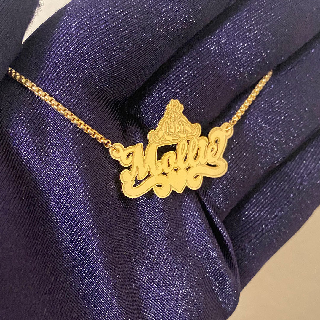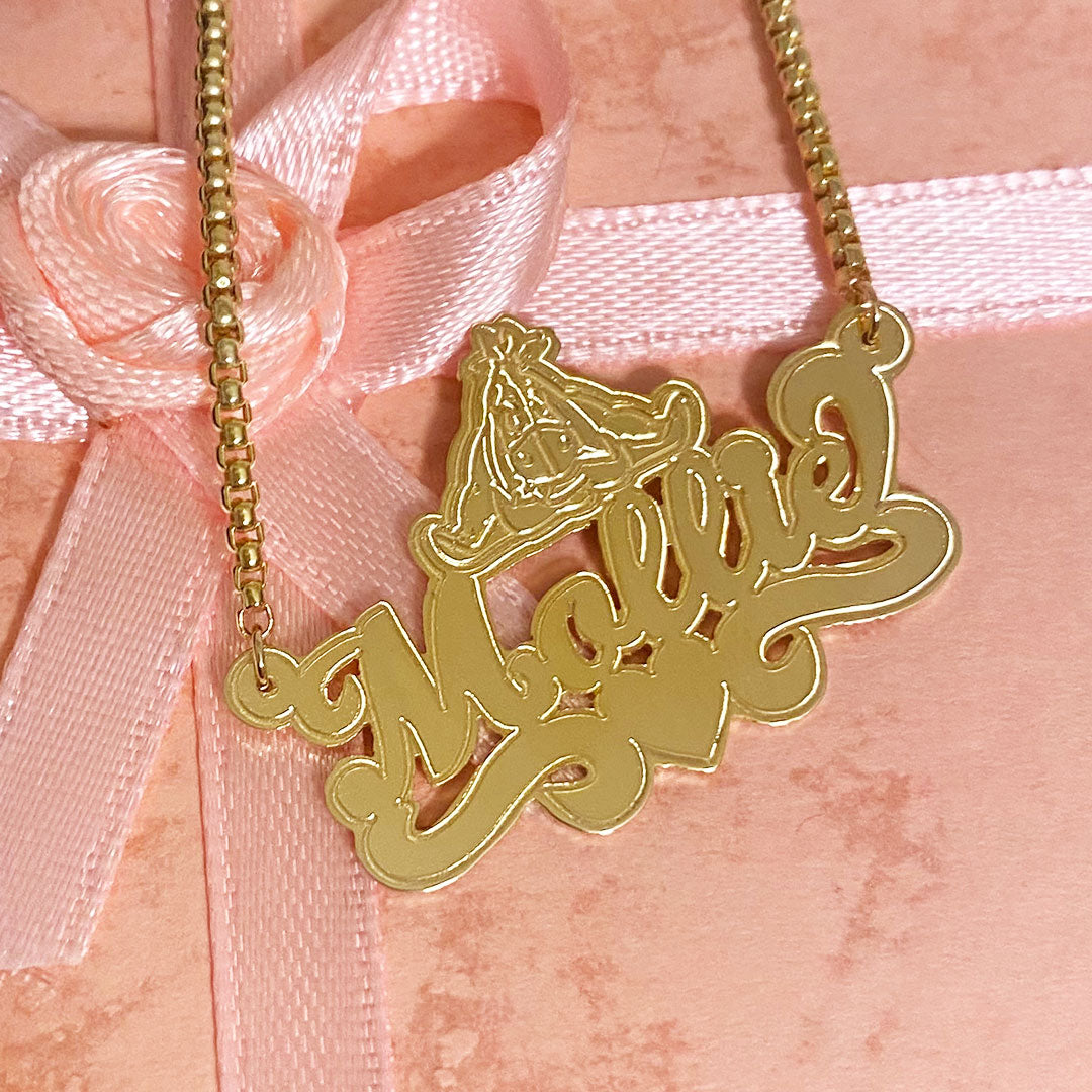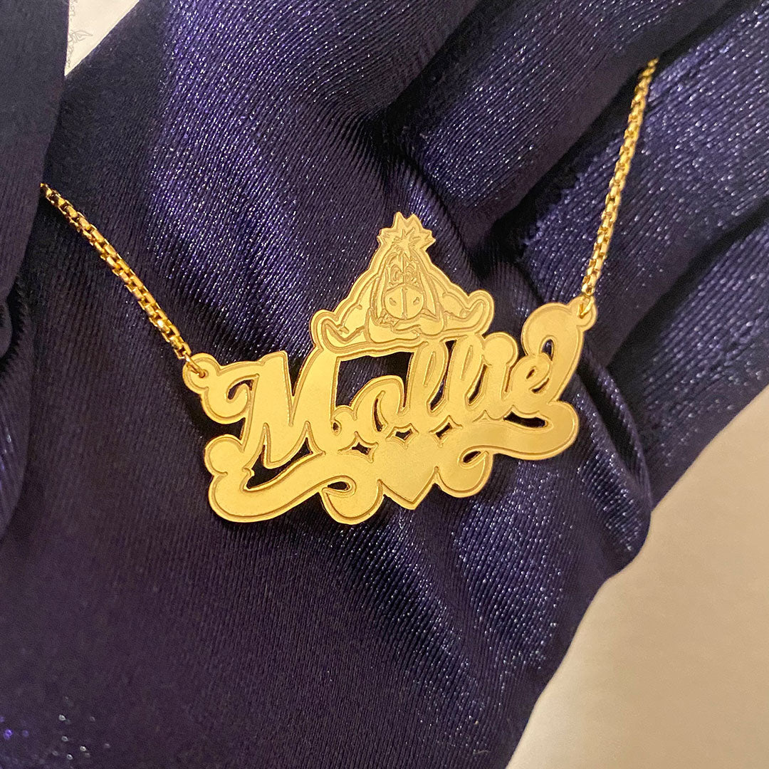 Personalized Cursive Name Plate Pendant with Heart Underline & Cartoon Character