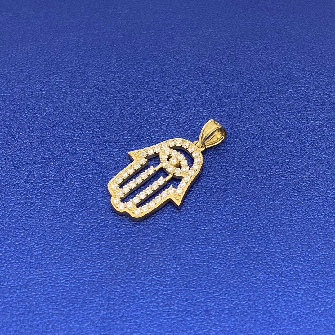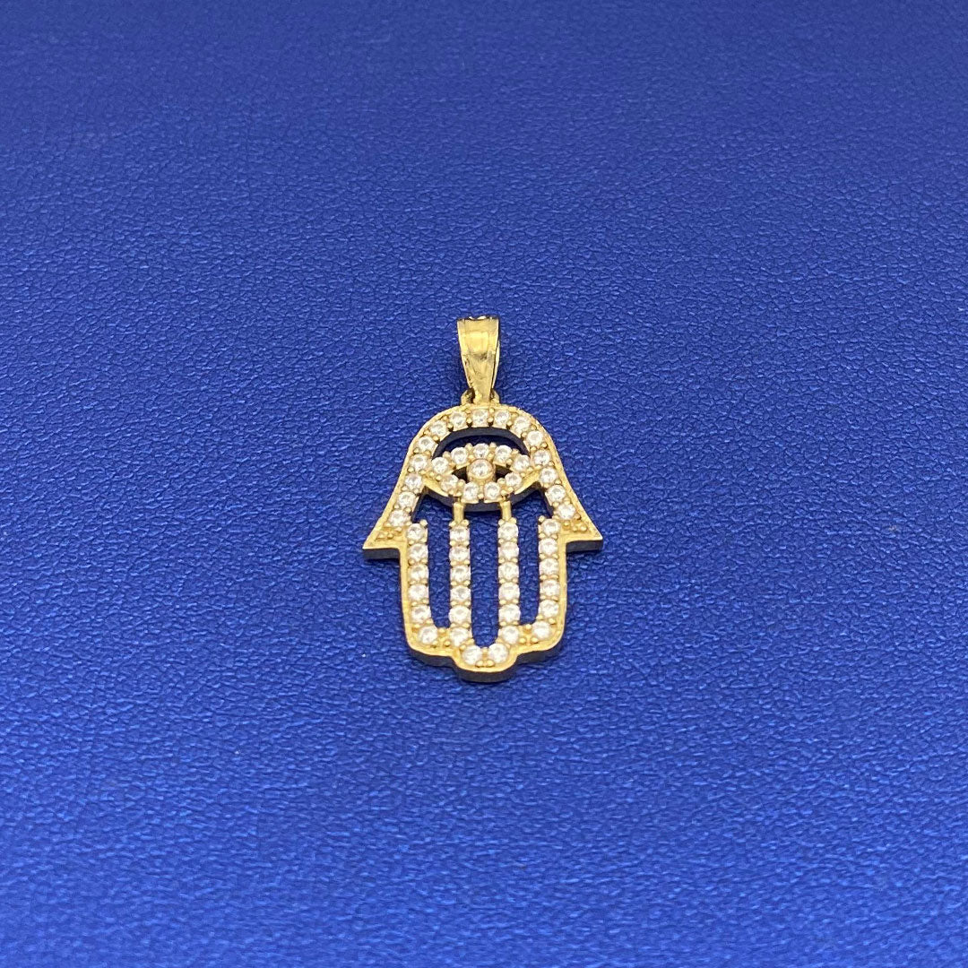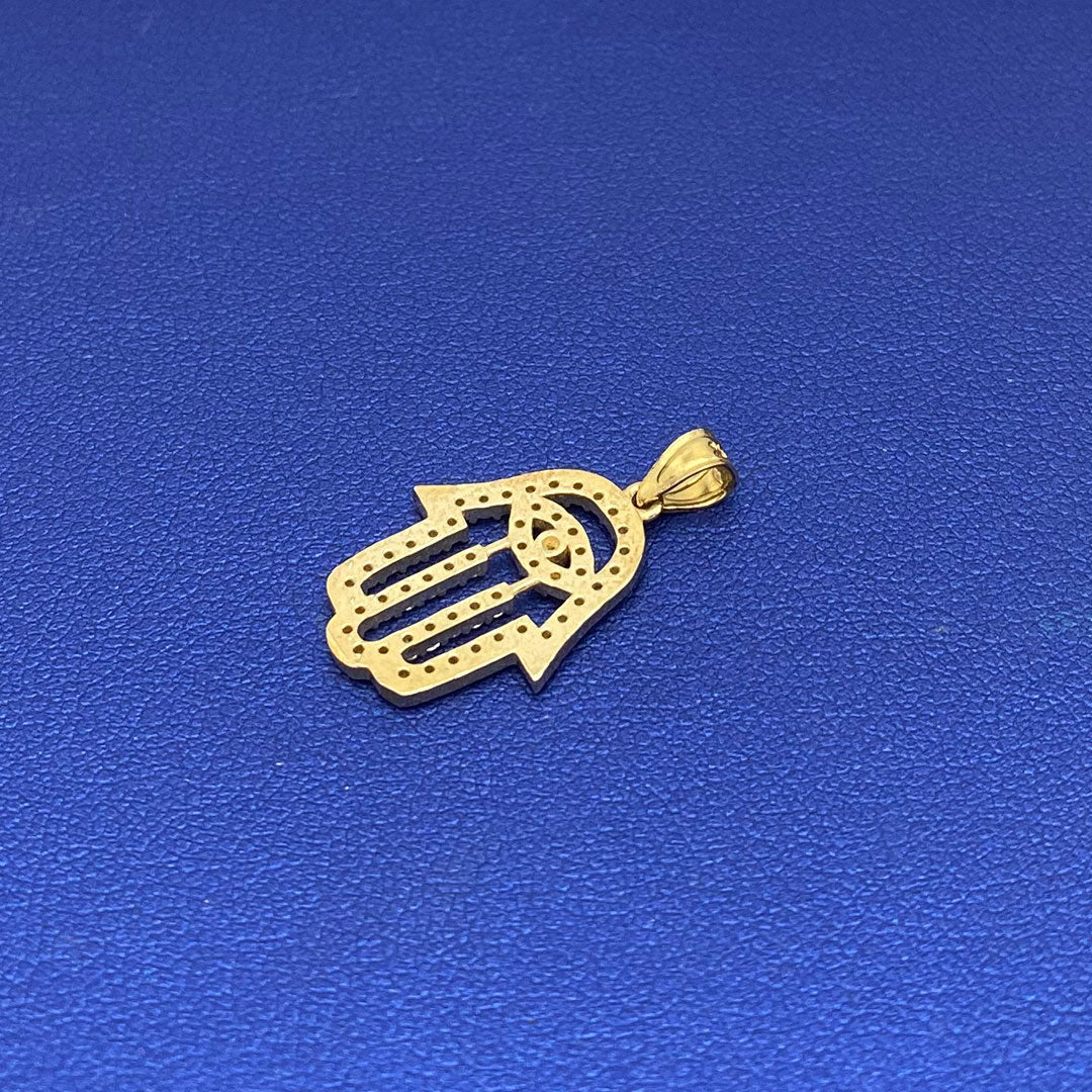 14k Baby Feet & Evil Eye with Blue Enamel Pendant$200.00