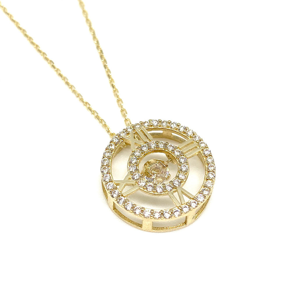14k CZ Roman Numberal Dancing Stone Pendant with Chain$225.00