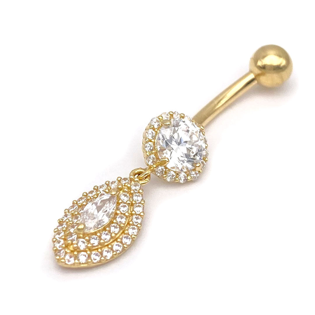 14k CZ Round & Marquise Shape Hanging Belly Ring$200.00