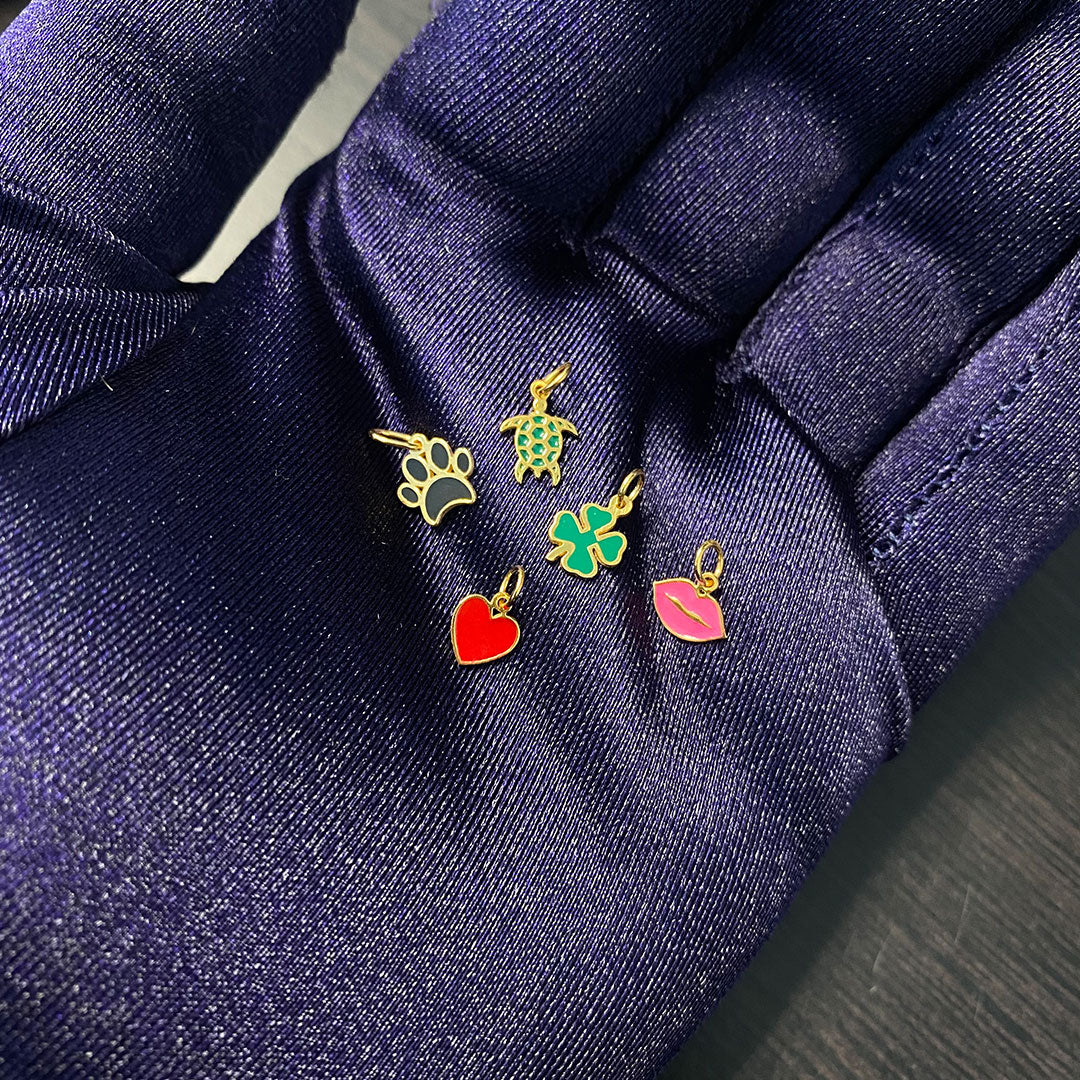 Custom 14k Gold Enamel MINI Charms - Lips, Heart, Paw Print, Turtle & Lucky Clover$150.00