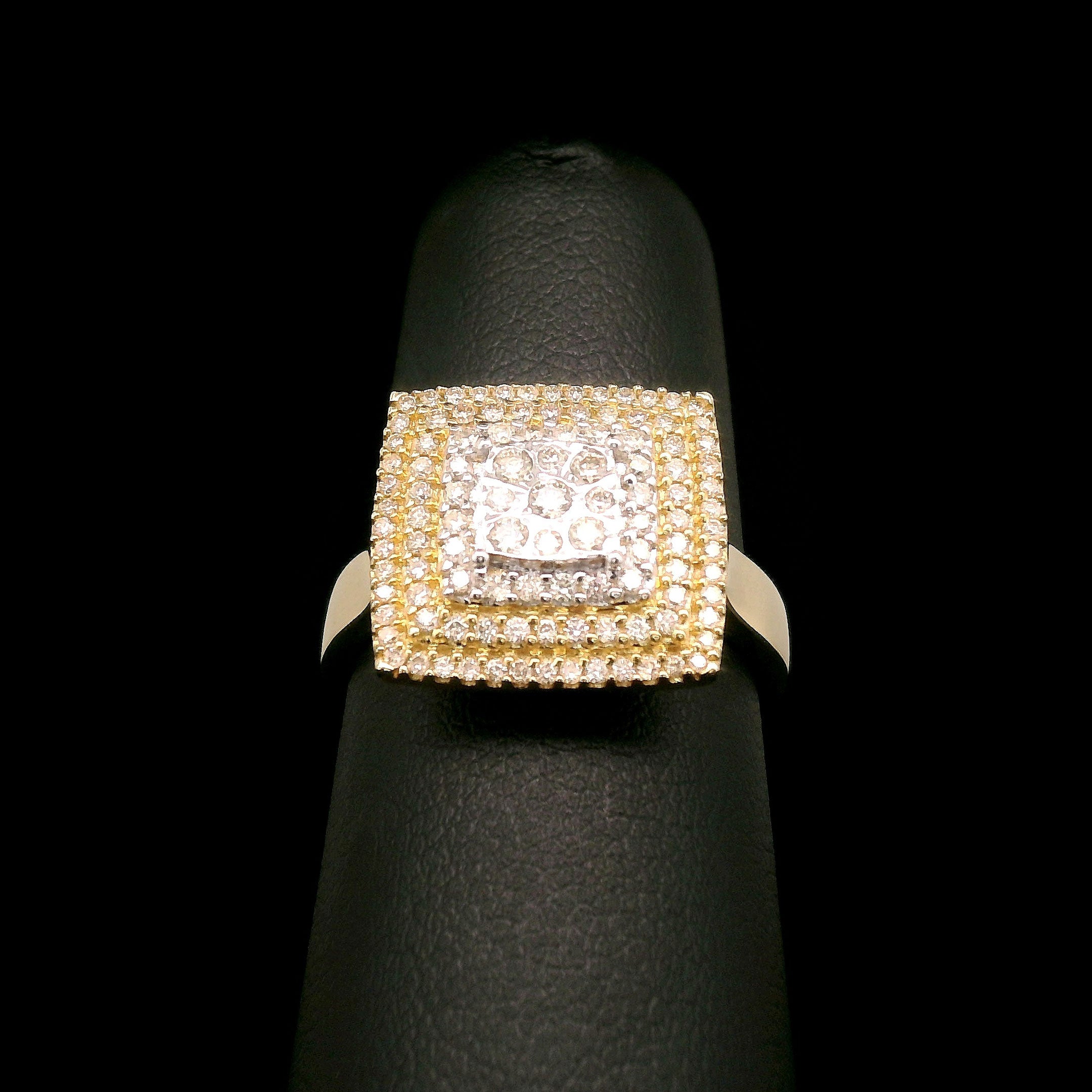Diamond Square Cluster with Triple Halo Engagement Ring 10k Yellow Gold 0.55ctw$725.00
