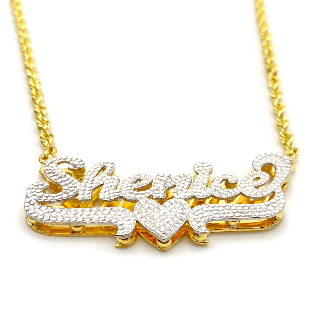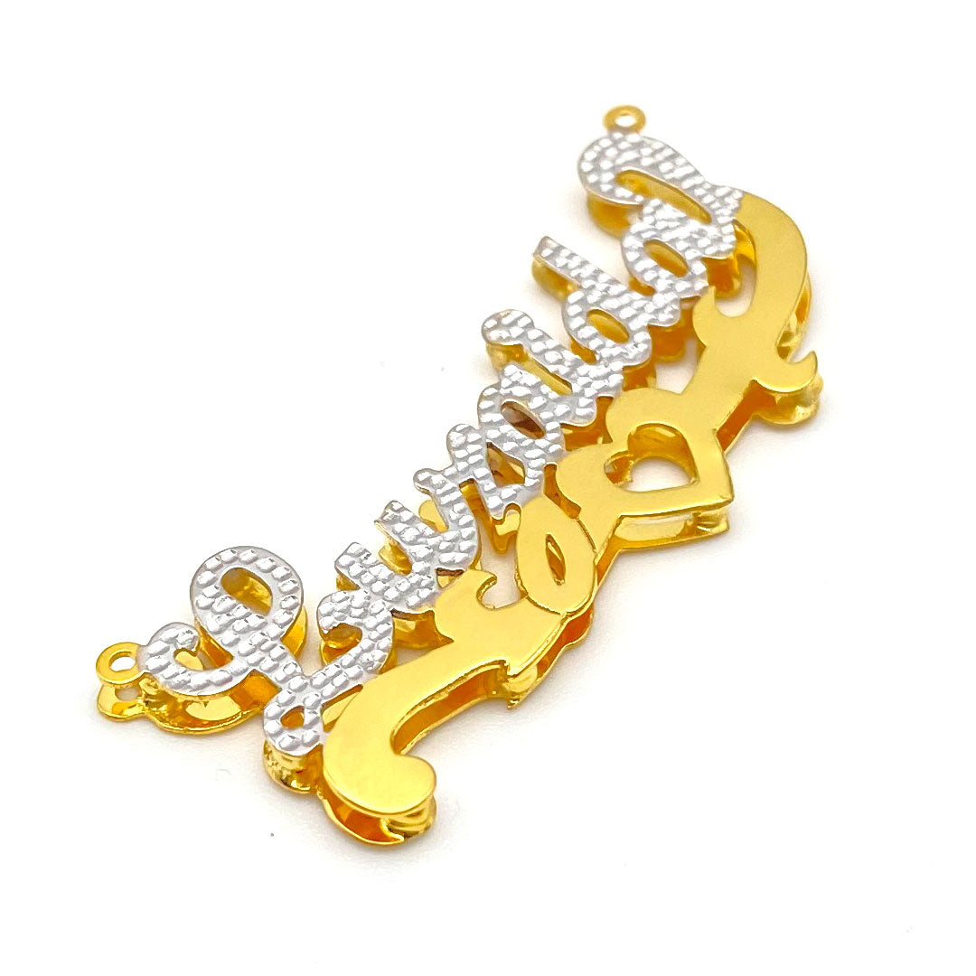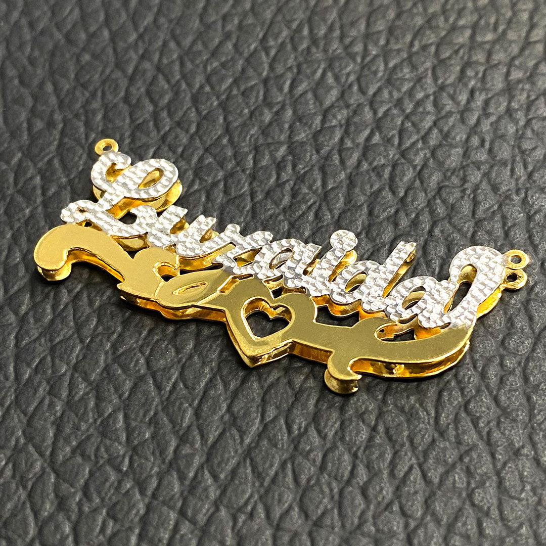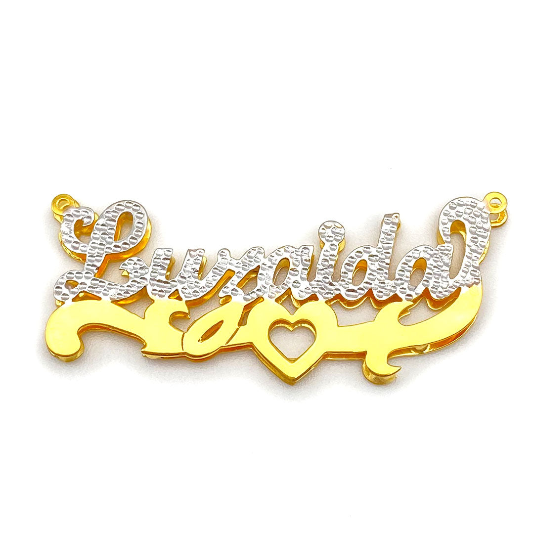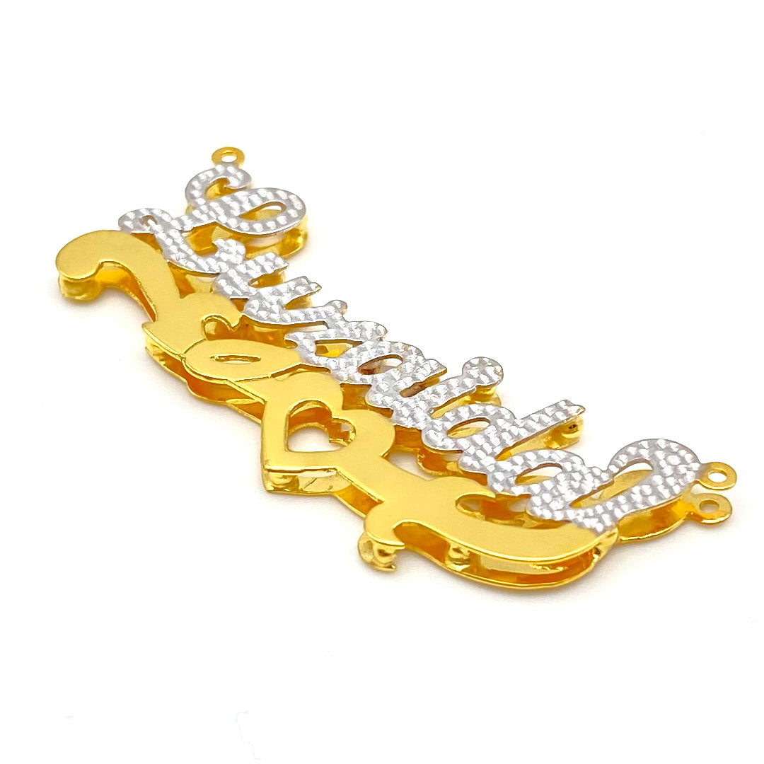 Personalized Diamond Cut Cursive Double Name Plate Pendant with Heart Underline