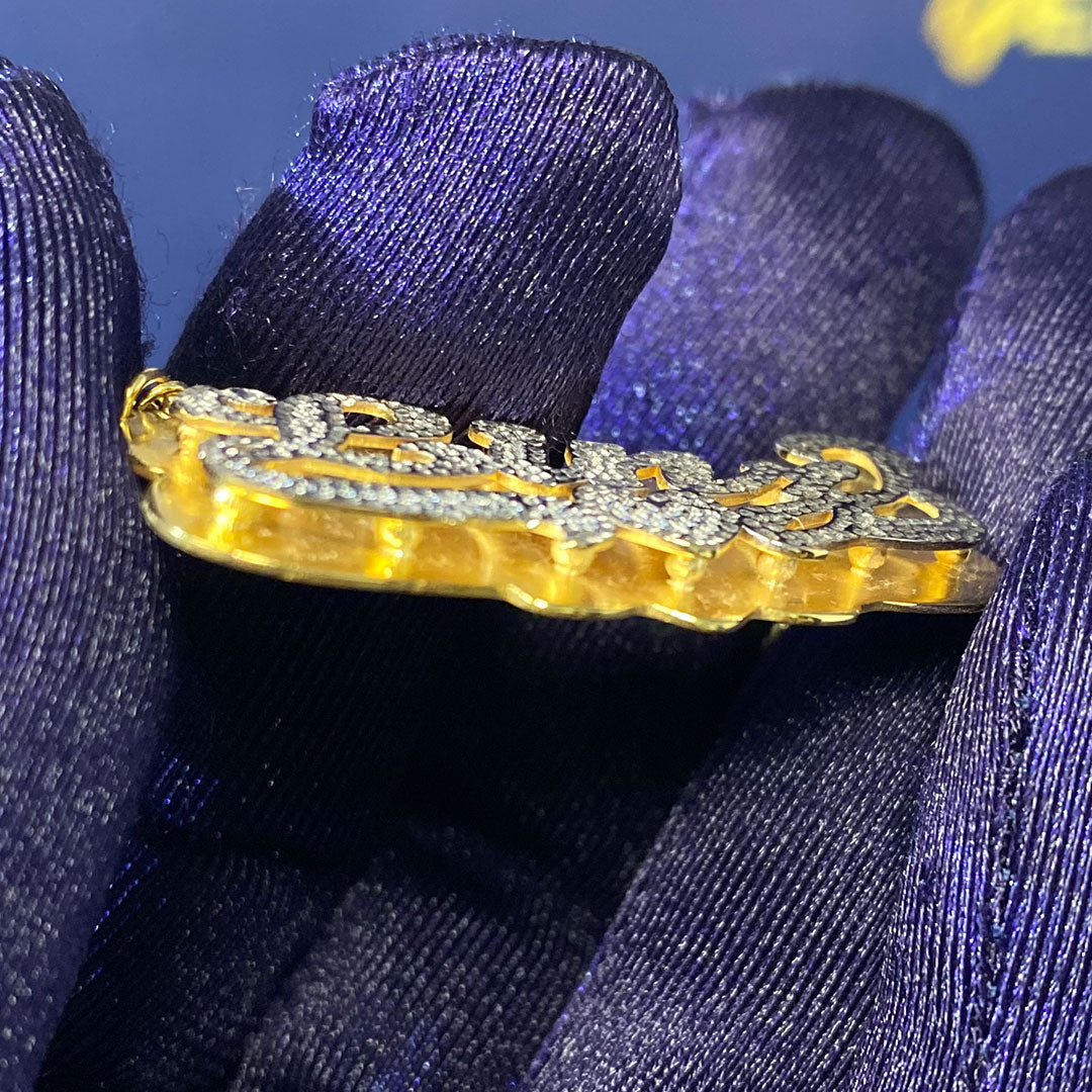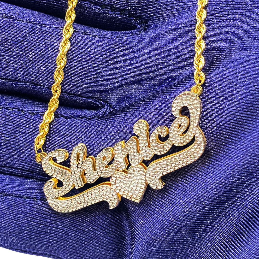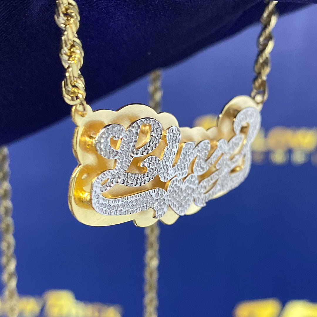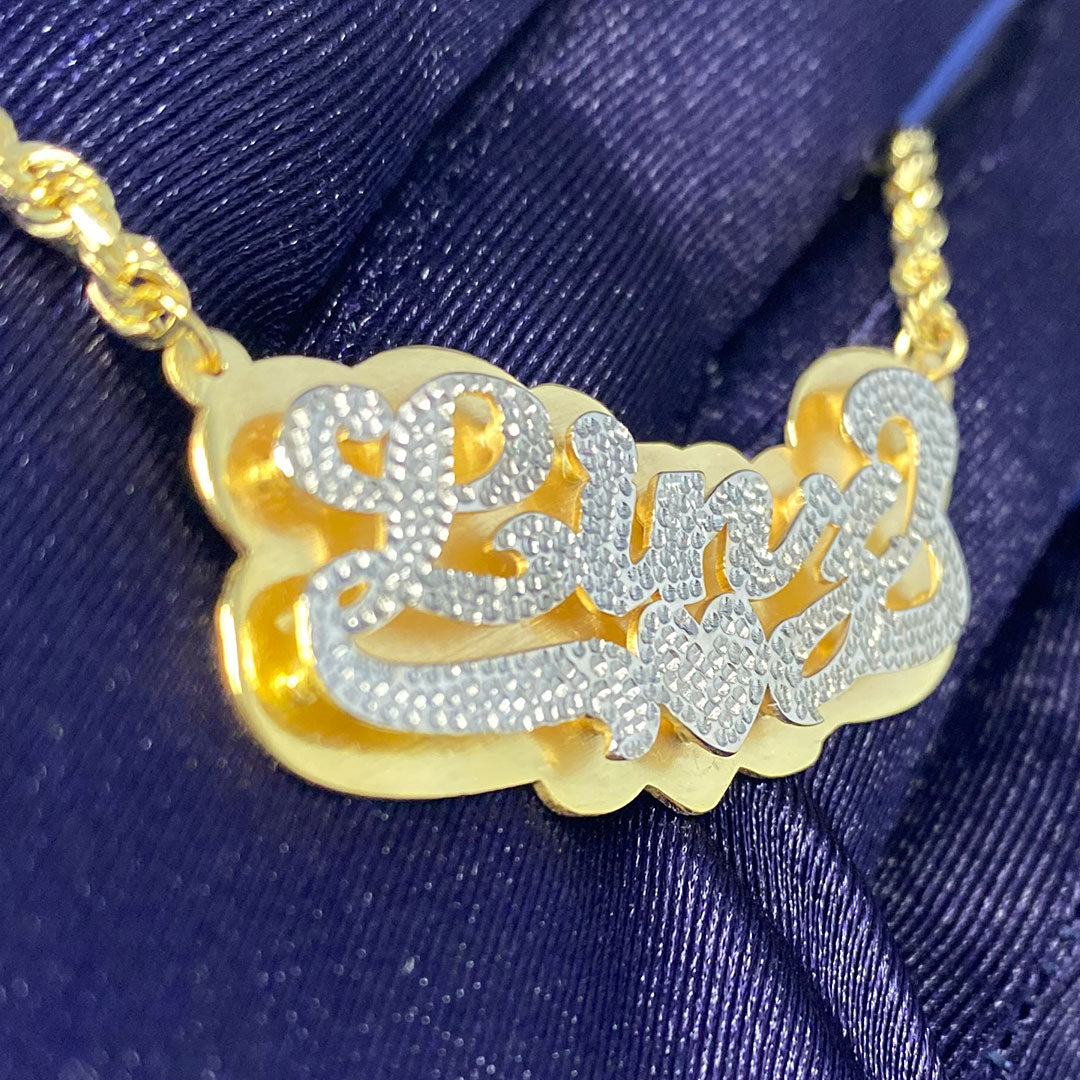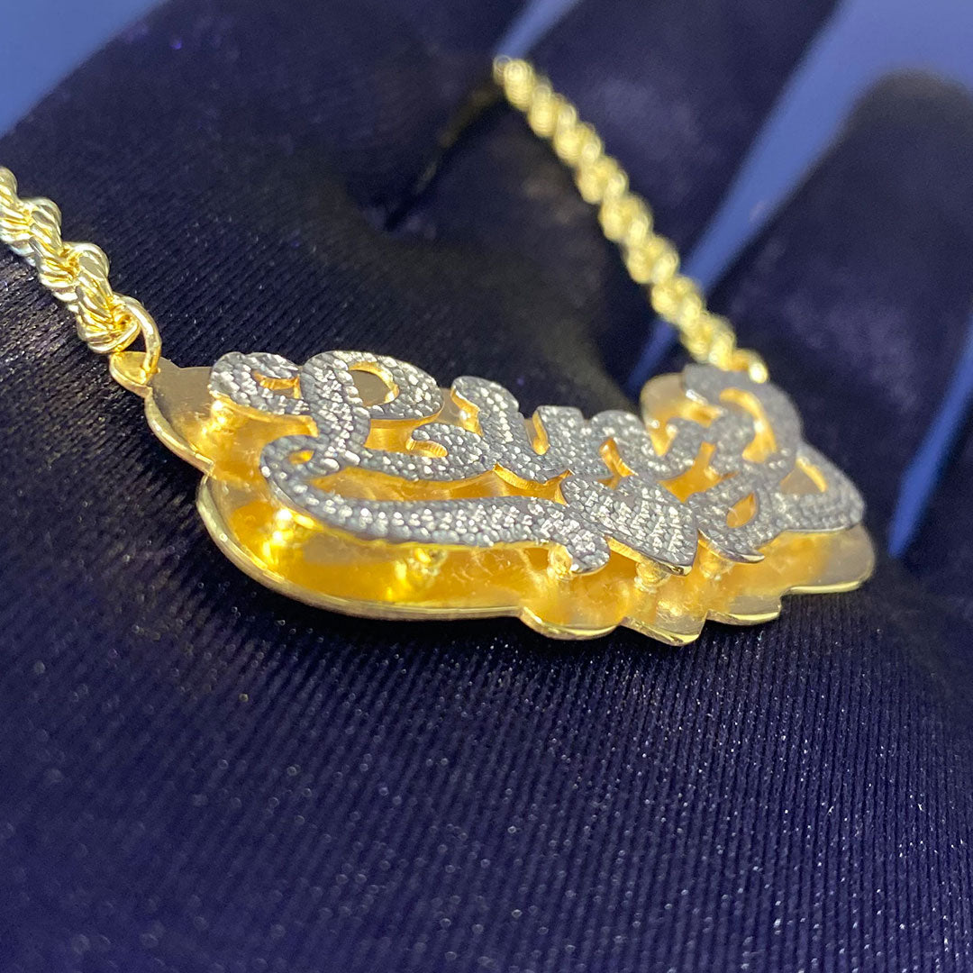 Personalized Diamond Cut Cursive Double Name Plate Pendant with Heart Underline