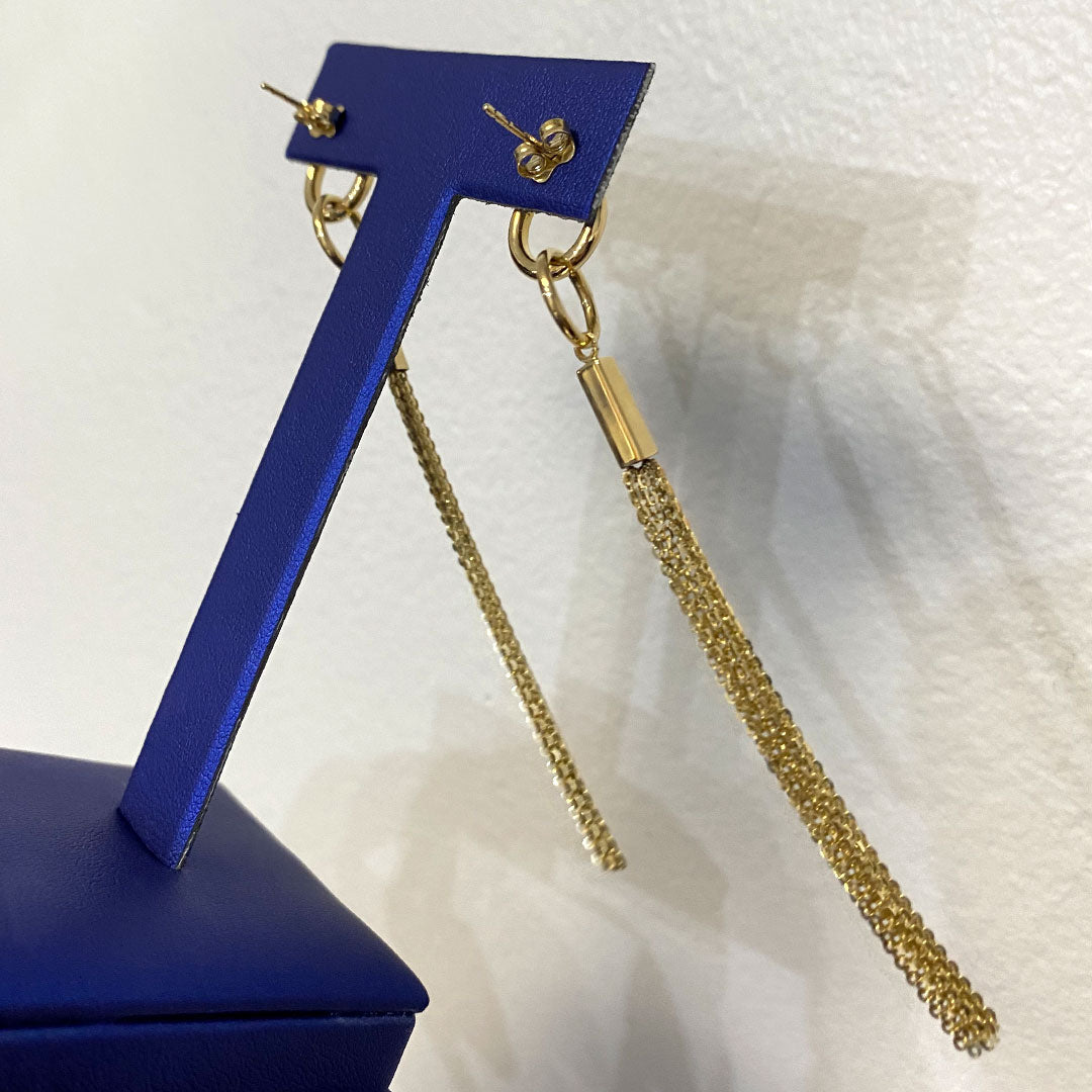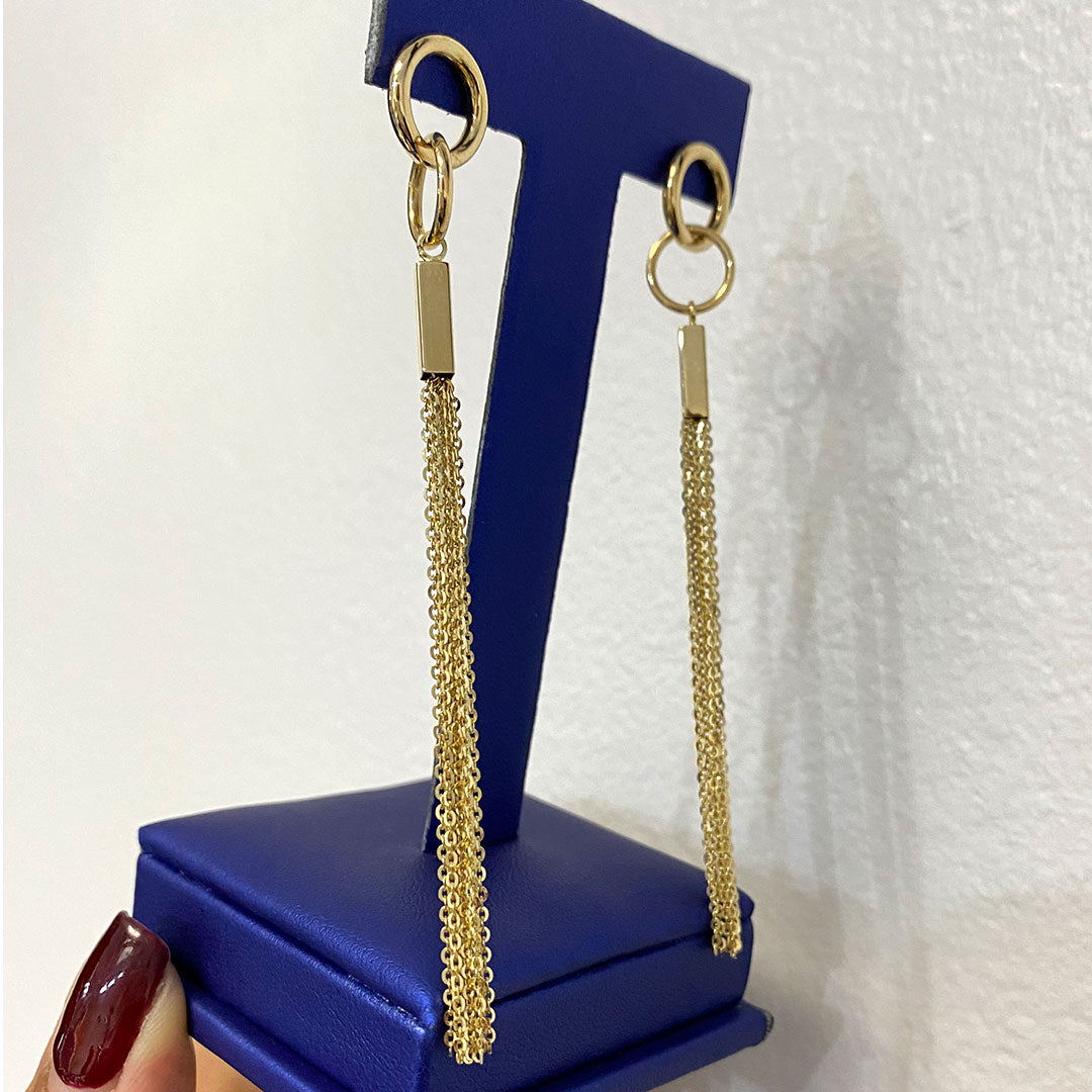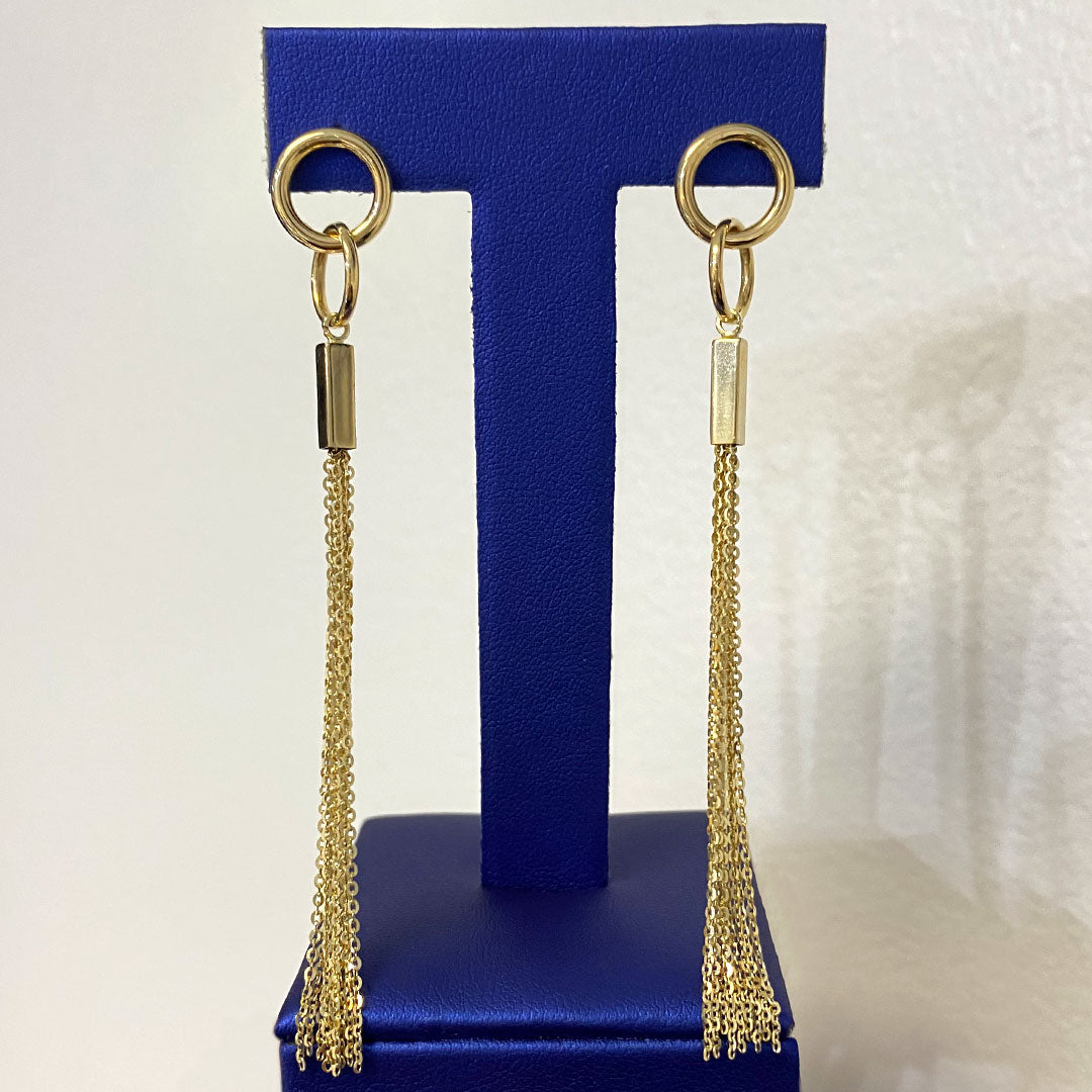 14k Fancy Interlocking Circles & Multi-chain Dangle Earrings with Push Back$725.00