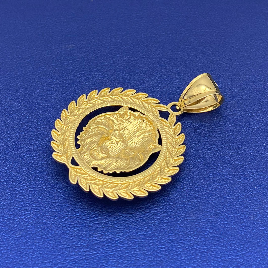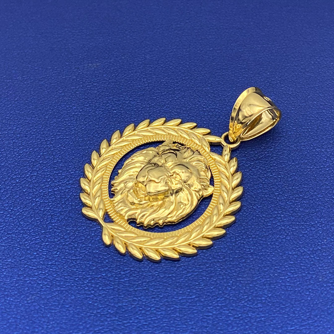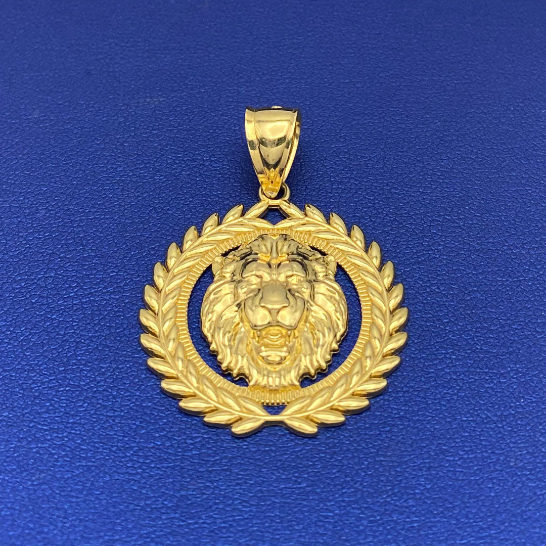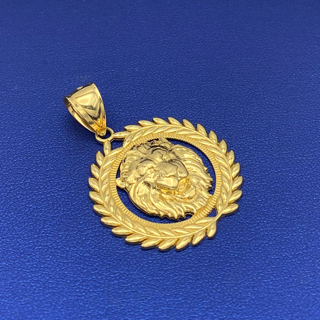 14k Lion Head with Laurel Wreath Border Pendant$750.00