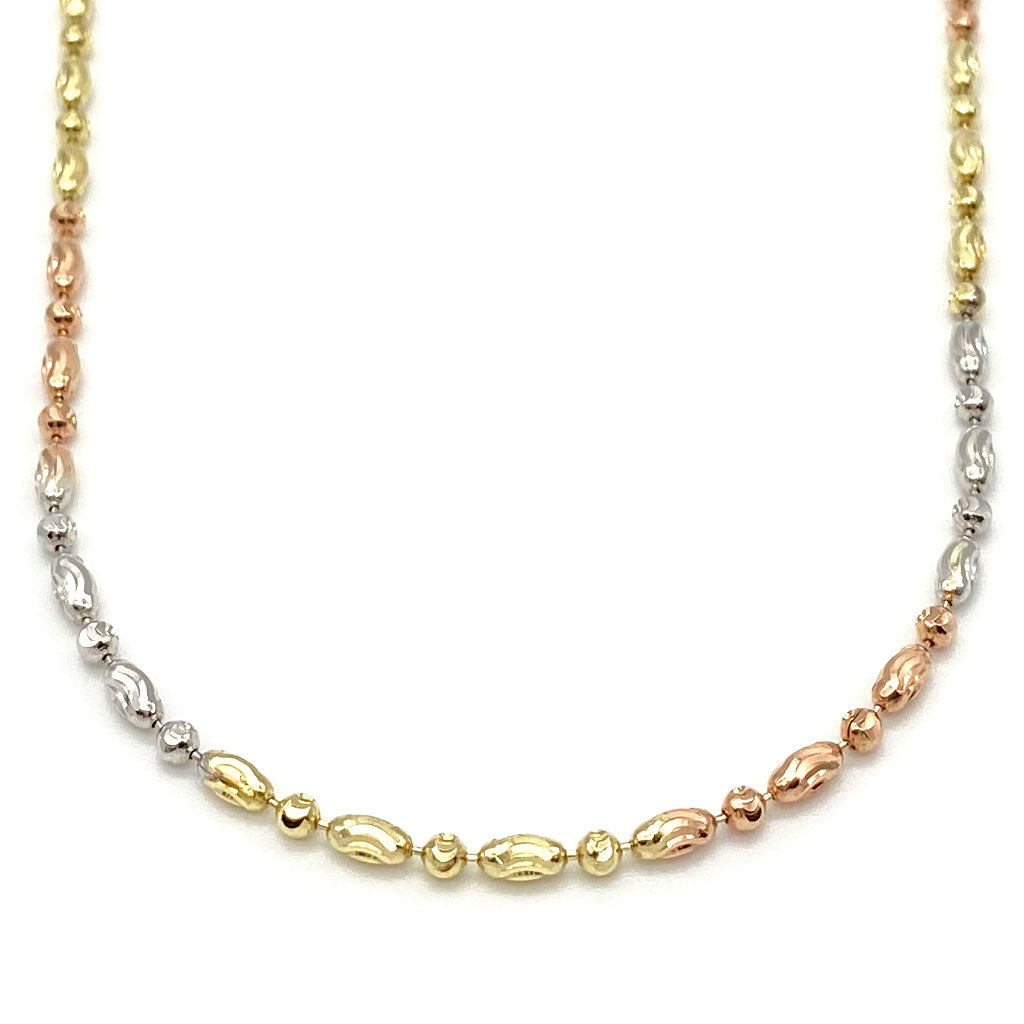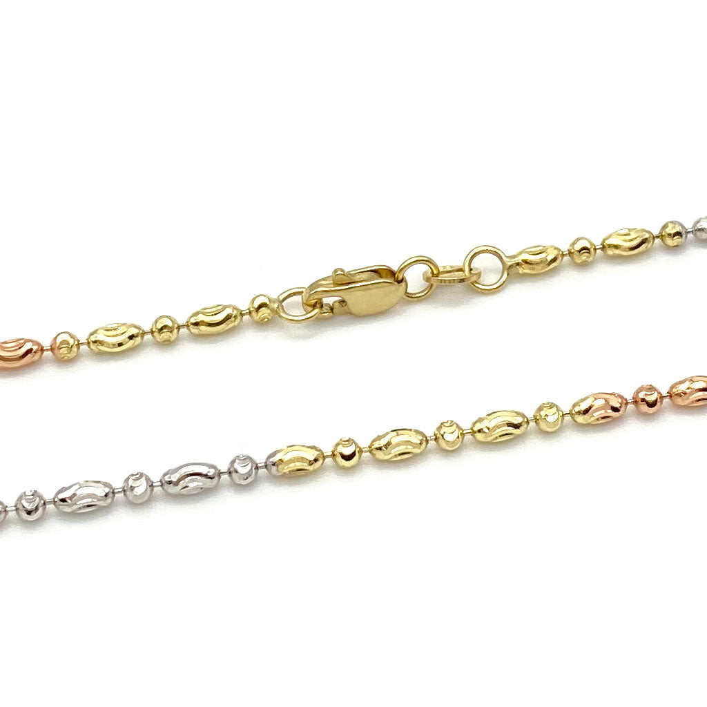 10k Tri-color Fancy Moon Bead Ball Fine Chain 2mm$750.00