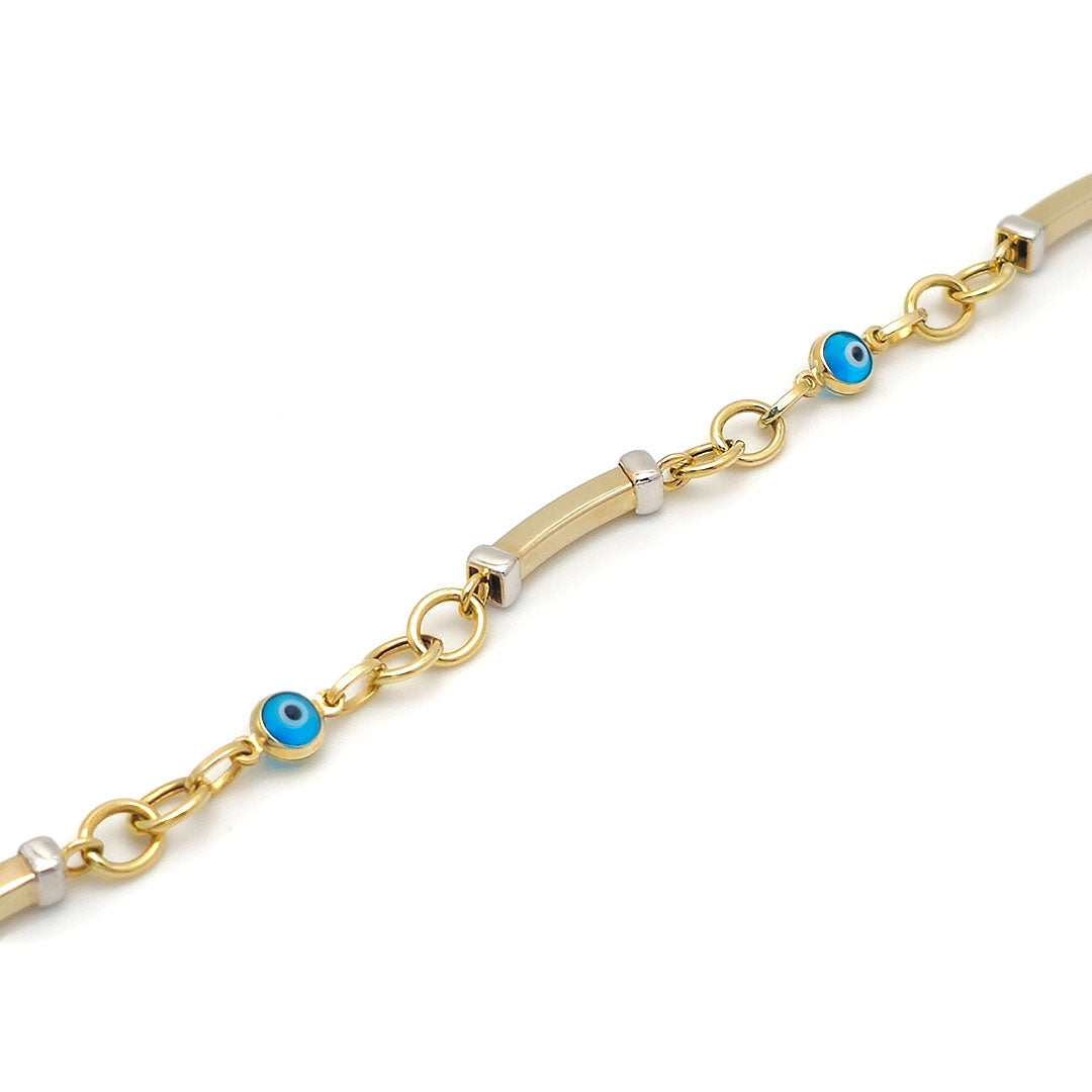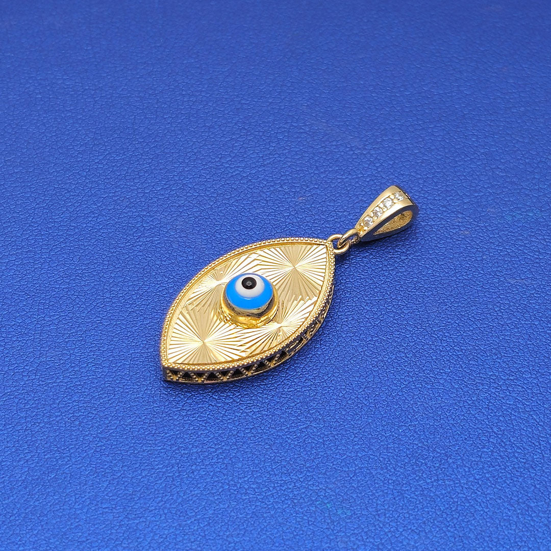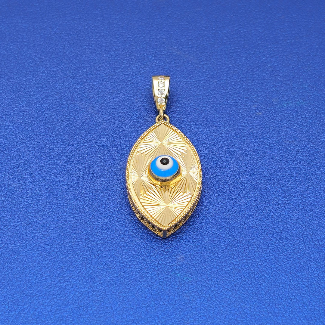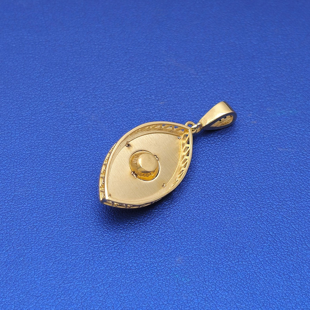 14k CZ Fancy Laser Cut Marquise Light Blue Evil Eye Pendant$465.00