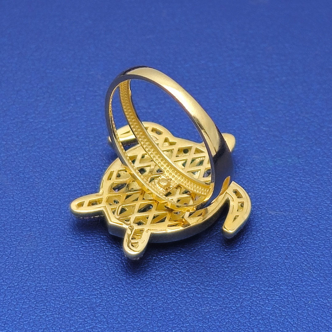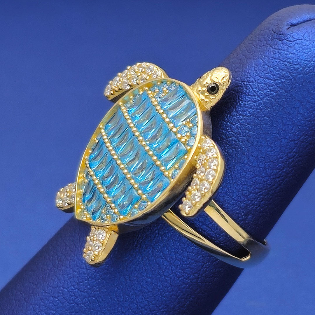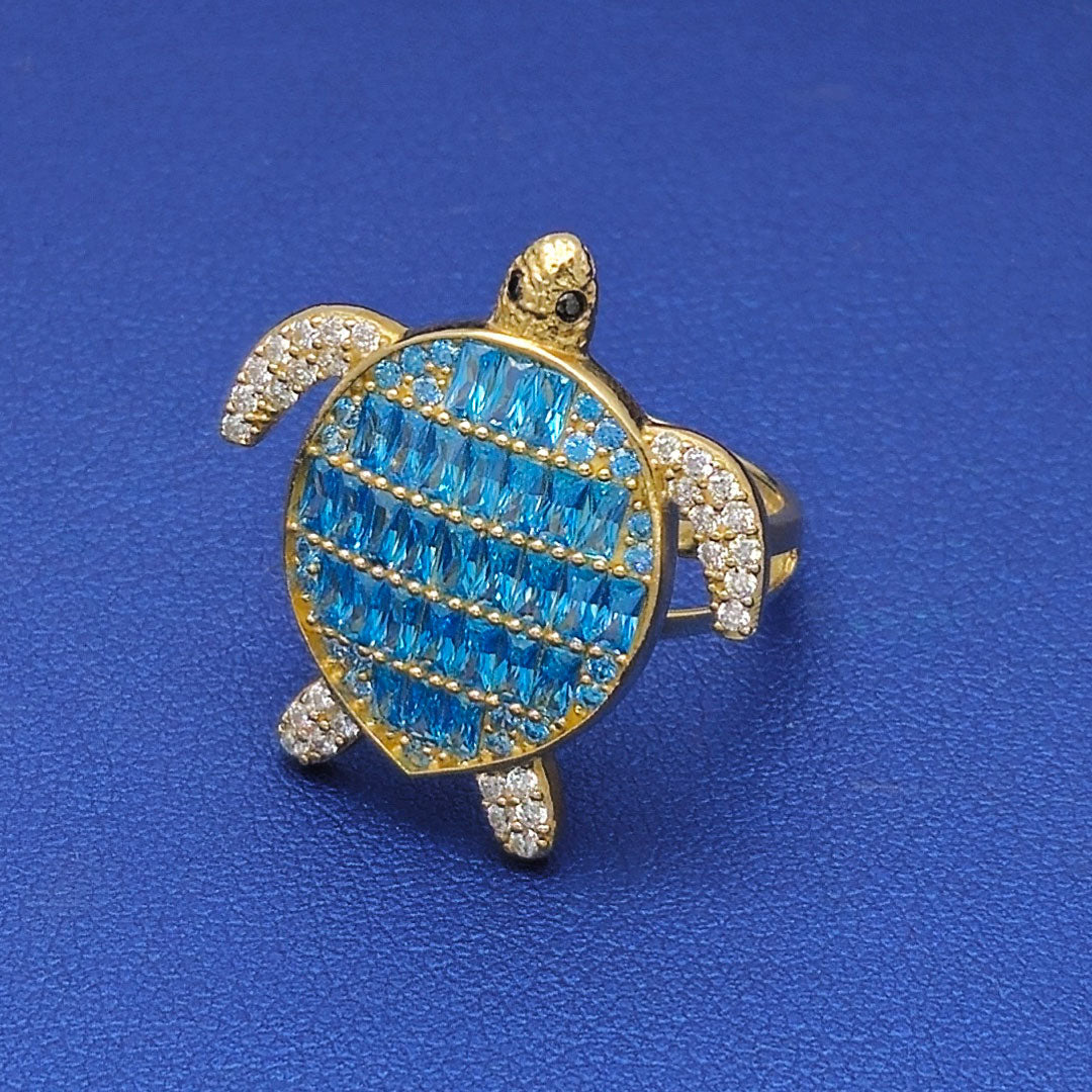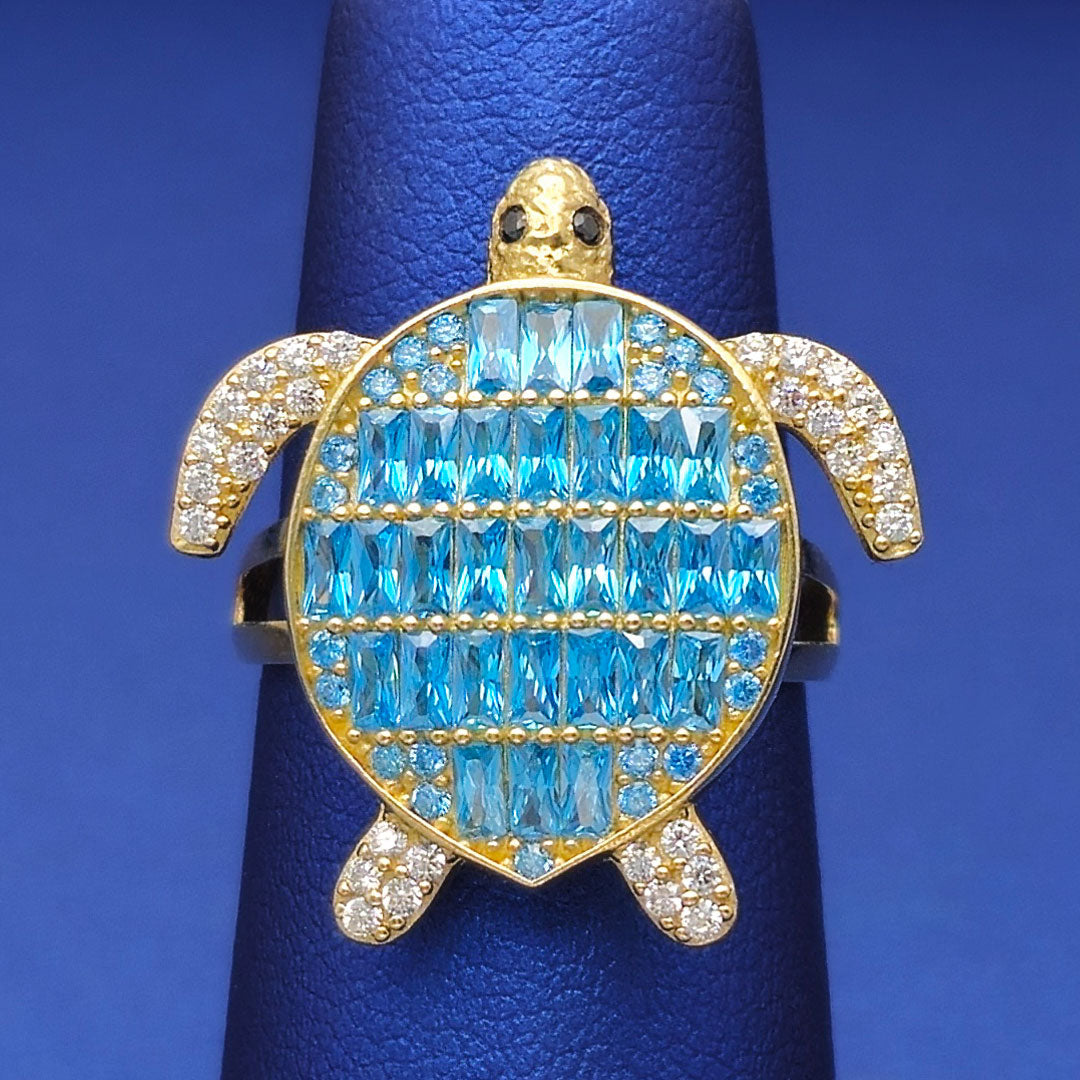 10k CZ Fancy Turtle with Blue Baguette Back Ring$500.00