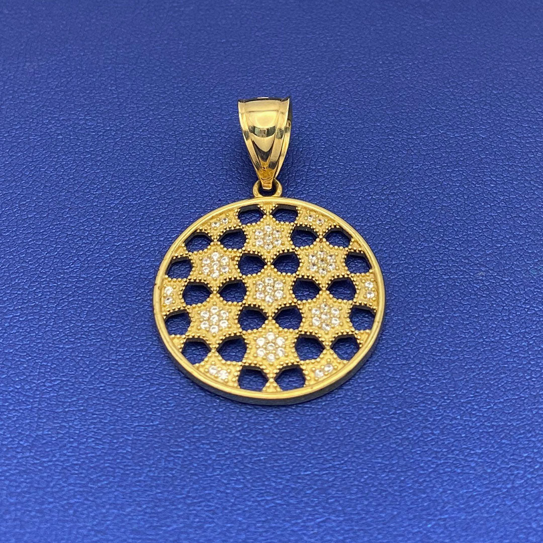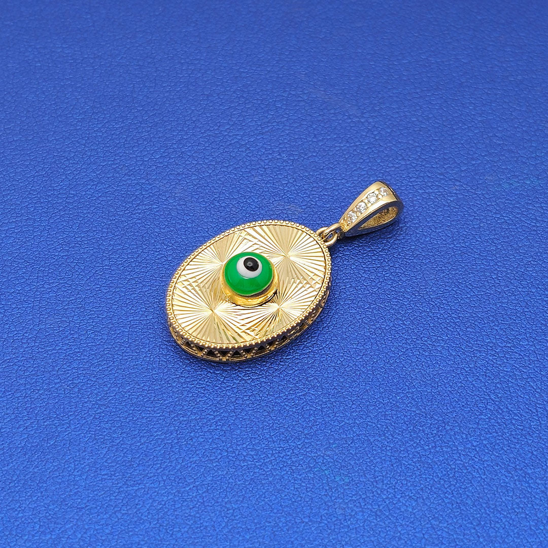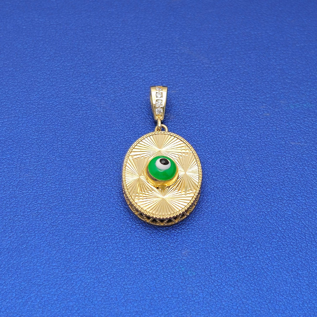 14k CZ Fancy Laser Cut Oval Green Evil Eye Pendant$465.00