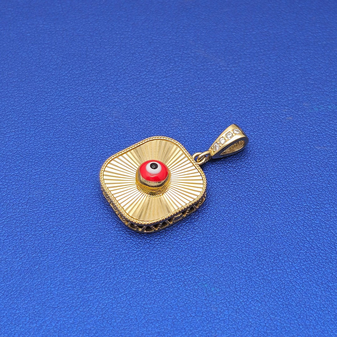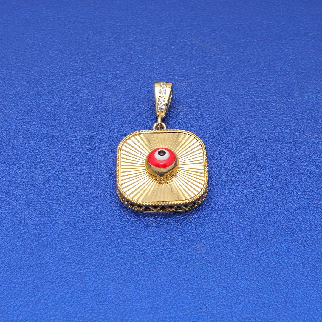 14k CZ Fancy Laser Cut Square Red Evil Eye Pendant$500.00