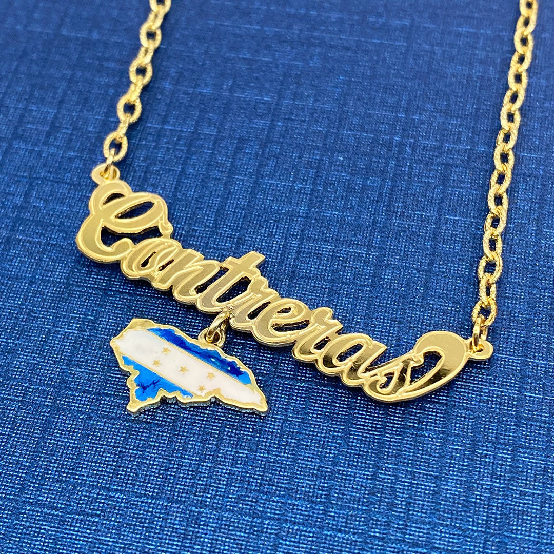 Personalized Cursive Name Plate Pendant with Enamel Map