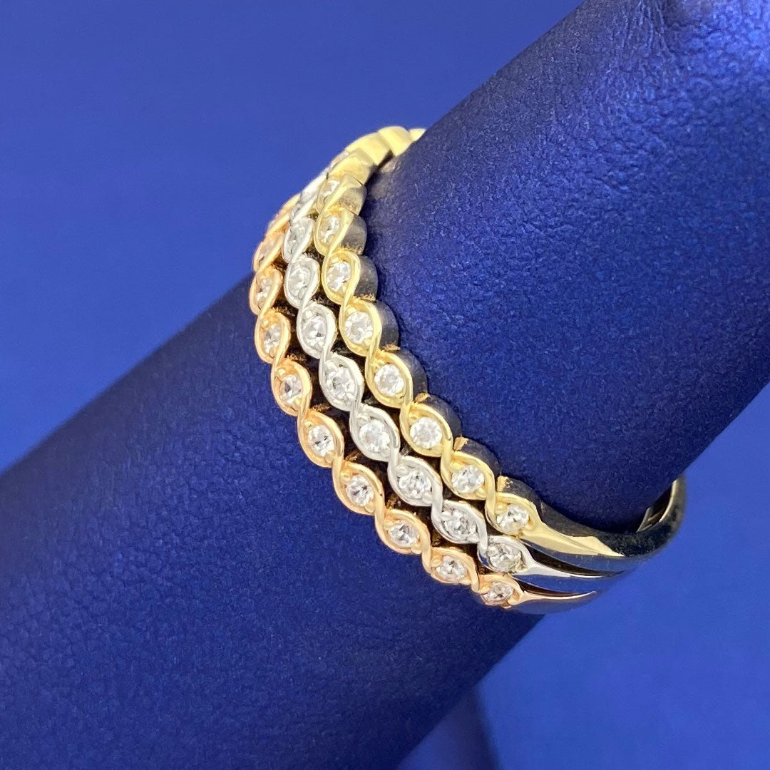 14k CZ Twist Pattern Stackable Ring - Set of 3 Tri-color$500.00