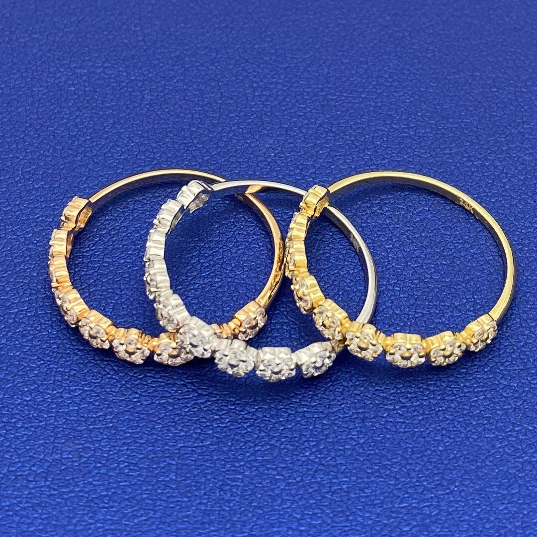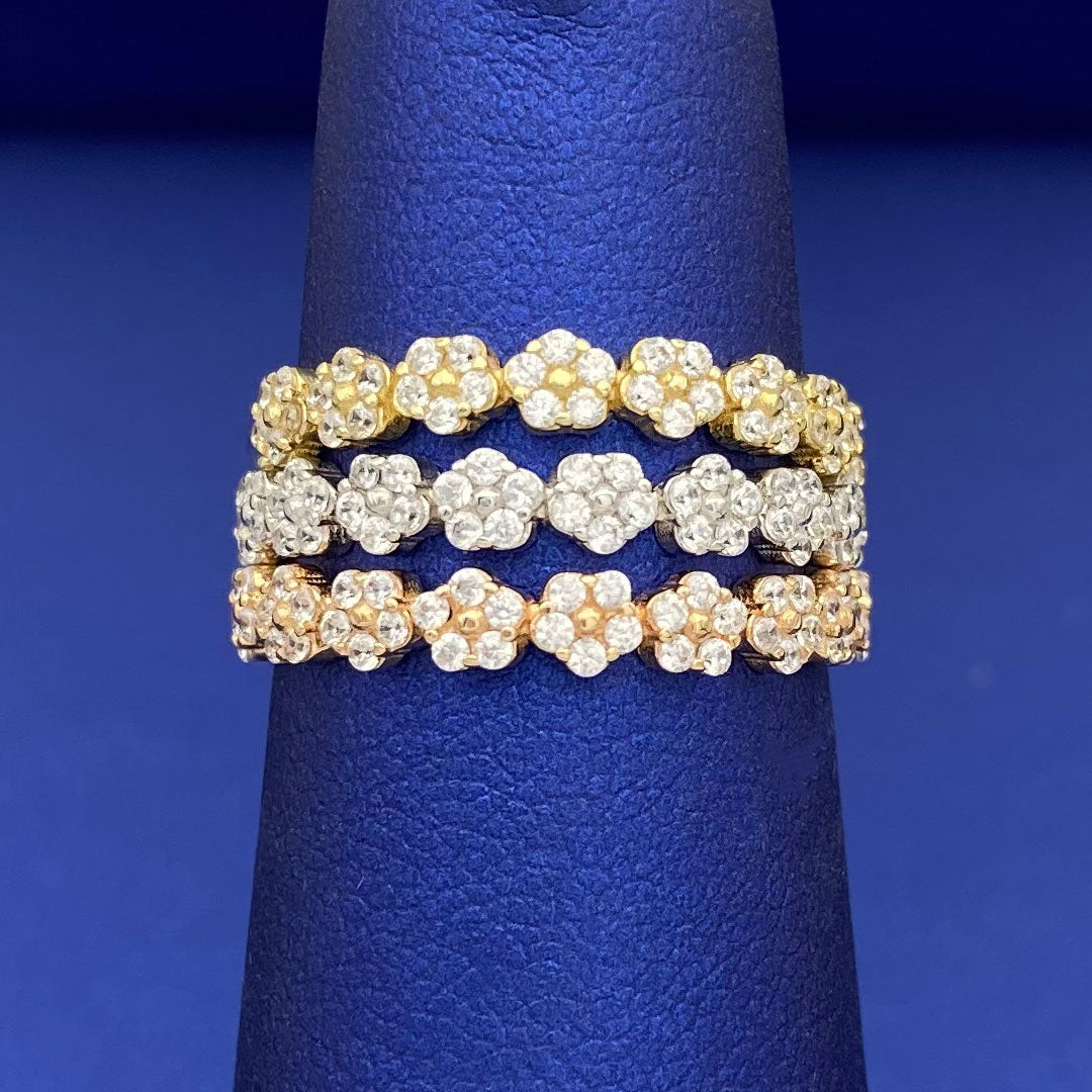 14k CZ Flower Pattern Stackable Ring - Set of 3 Tri-color$525.00