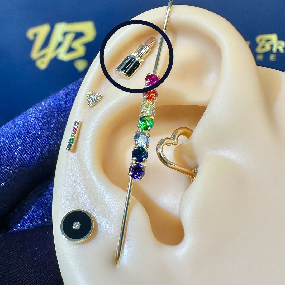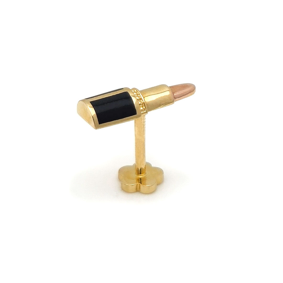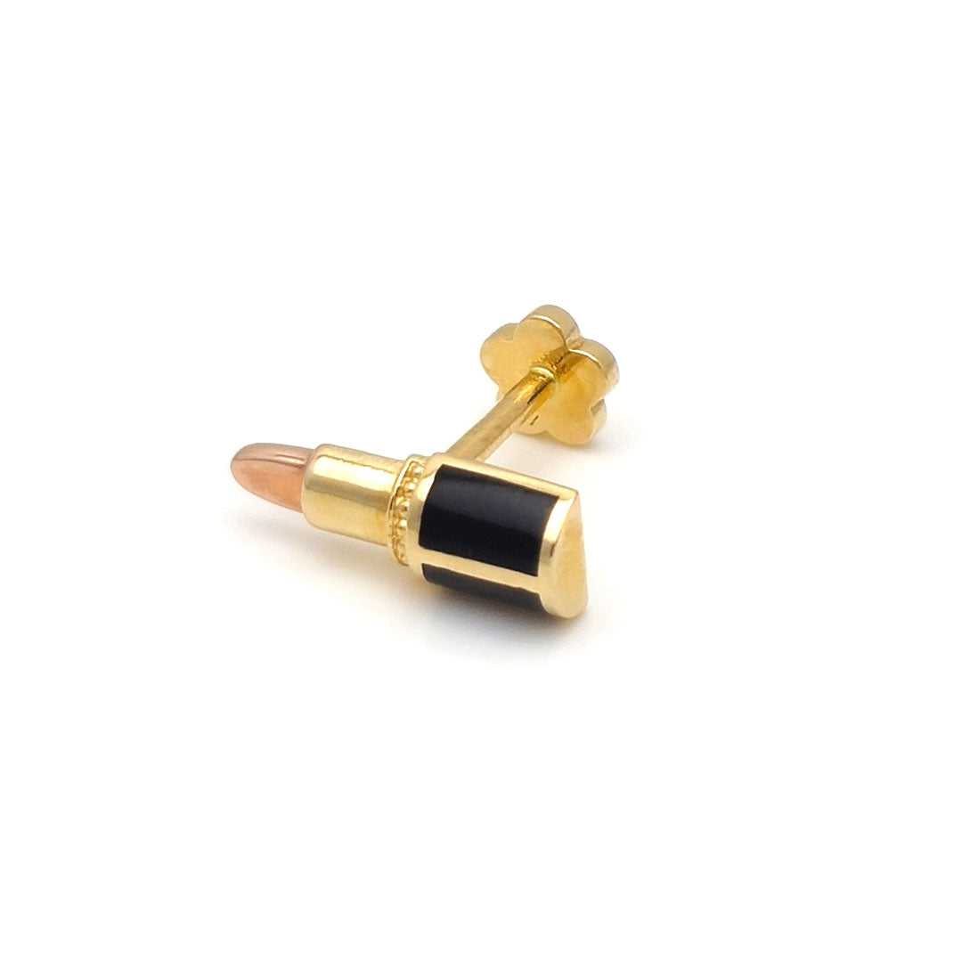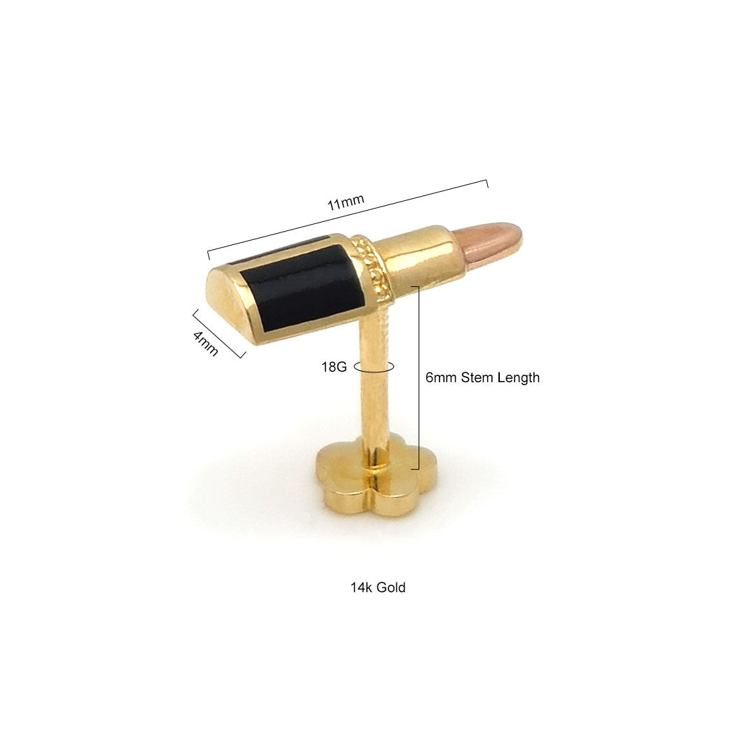 14k Black Enamel Lipstick Rose Gold Tip Internal Threaded Stud$90.00