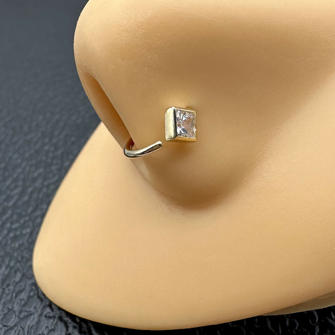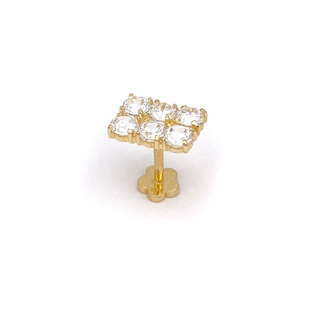 14k CZ Double Row Rectangle Internal Threaded Stud$100.00