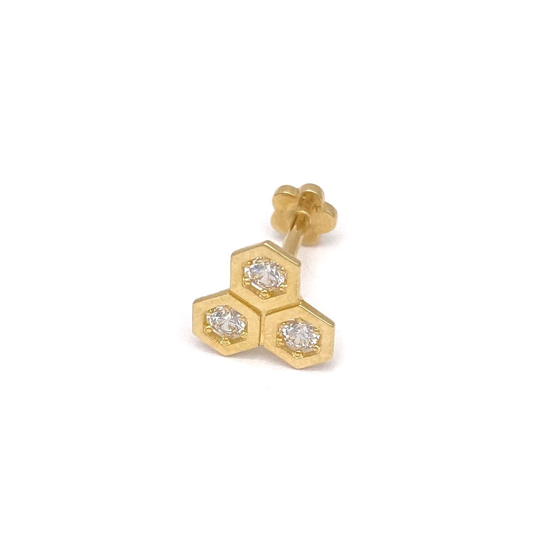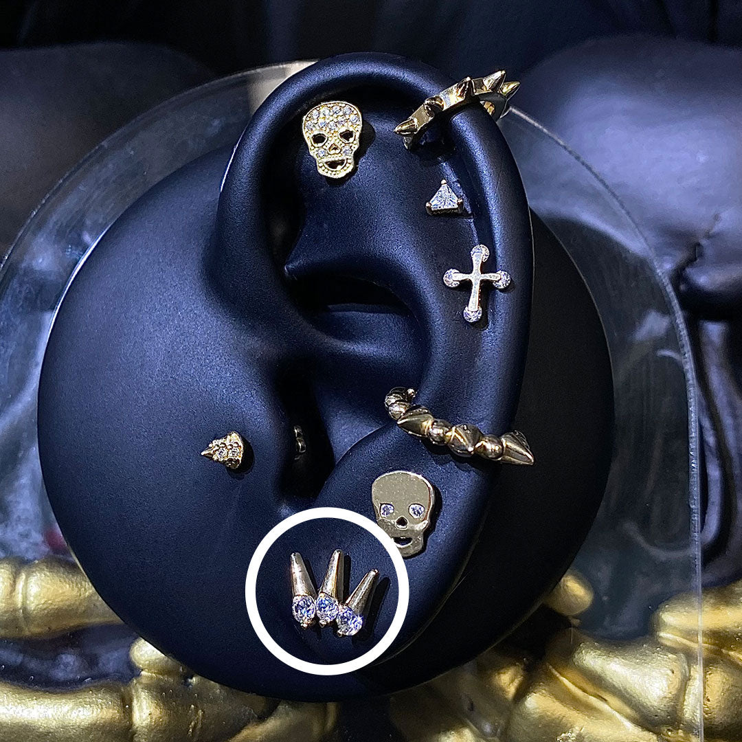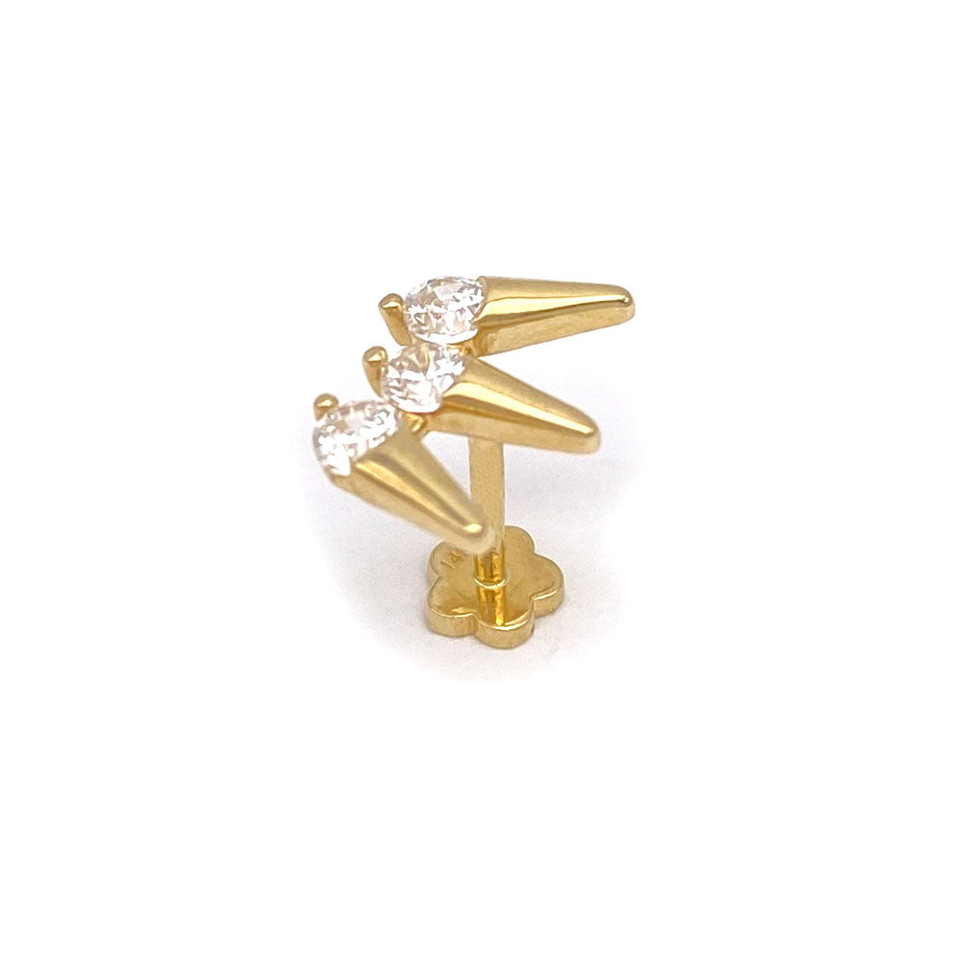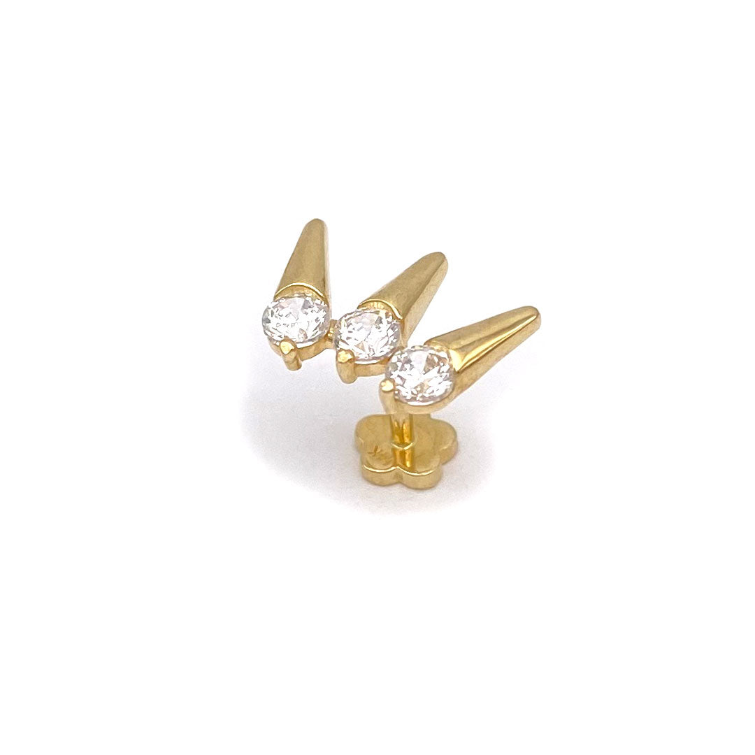14k CZ Triple Rivet Spike Internal Threaded Stud$120.00