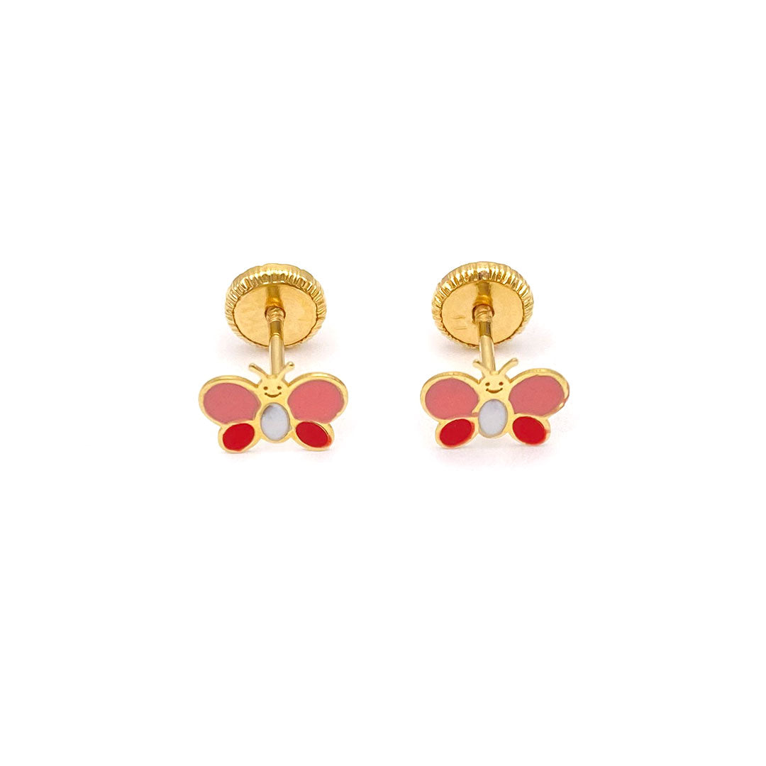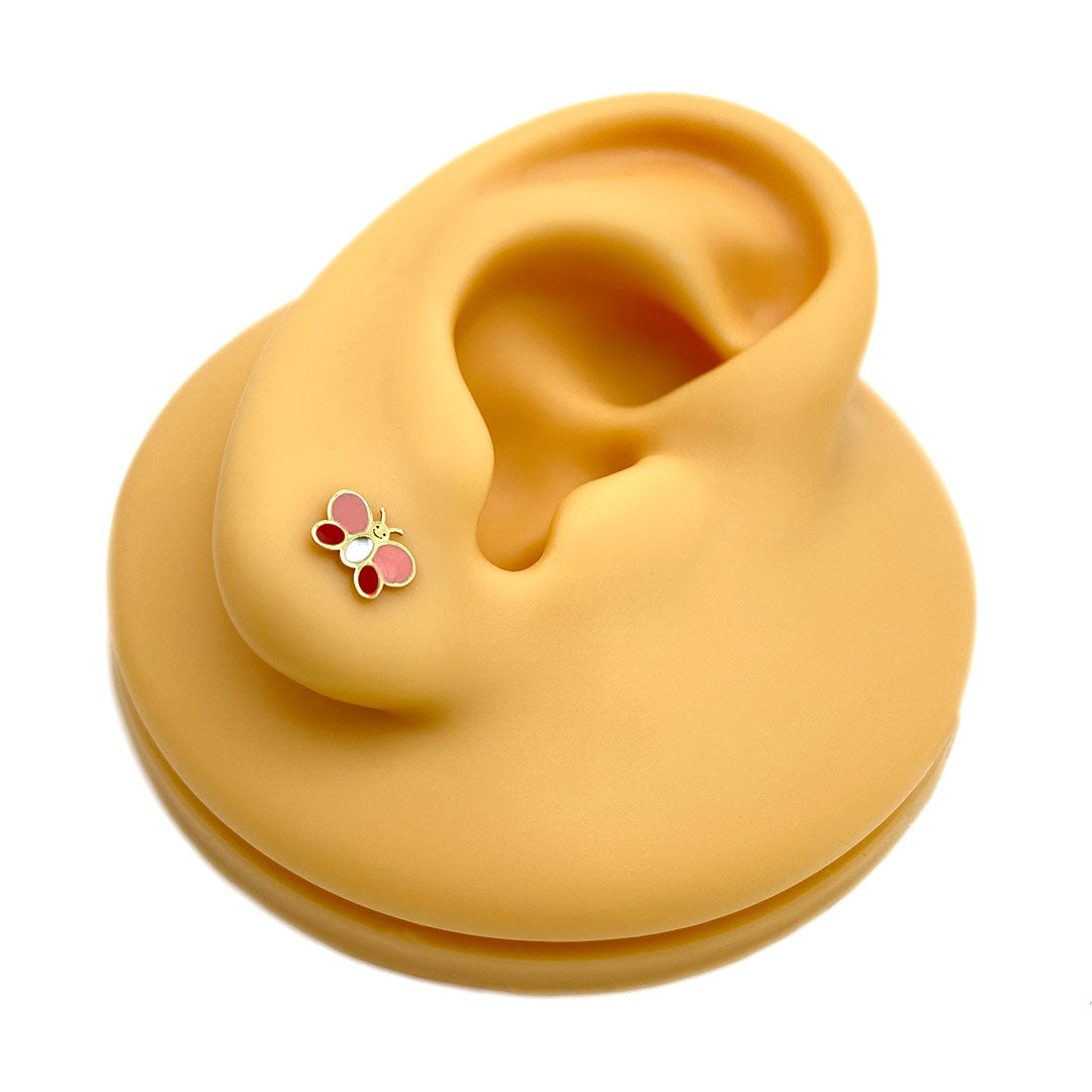14k Screw Back Pink White & Red Butterfly Baby/Kids Earrings$100.00