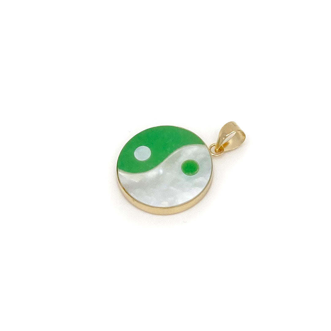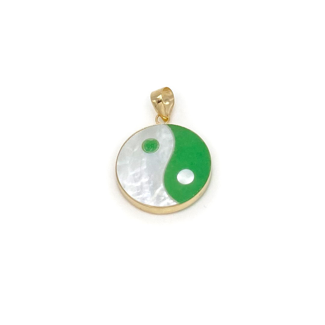 14k Yin & Yang Round Pendant - Green Jade & Mother of Pearl$100.00
