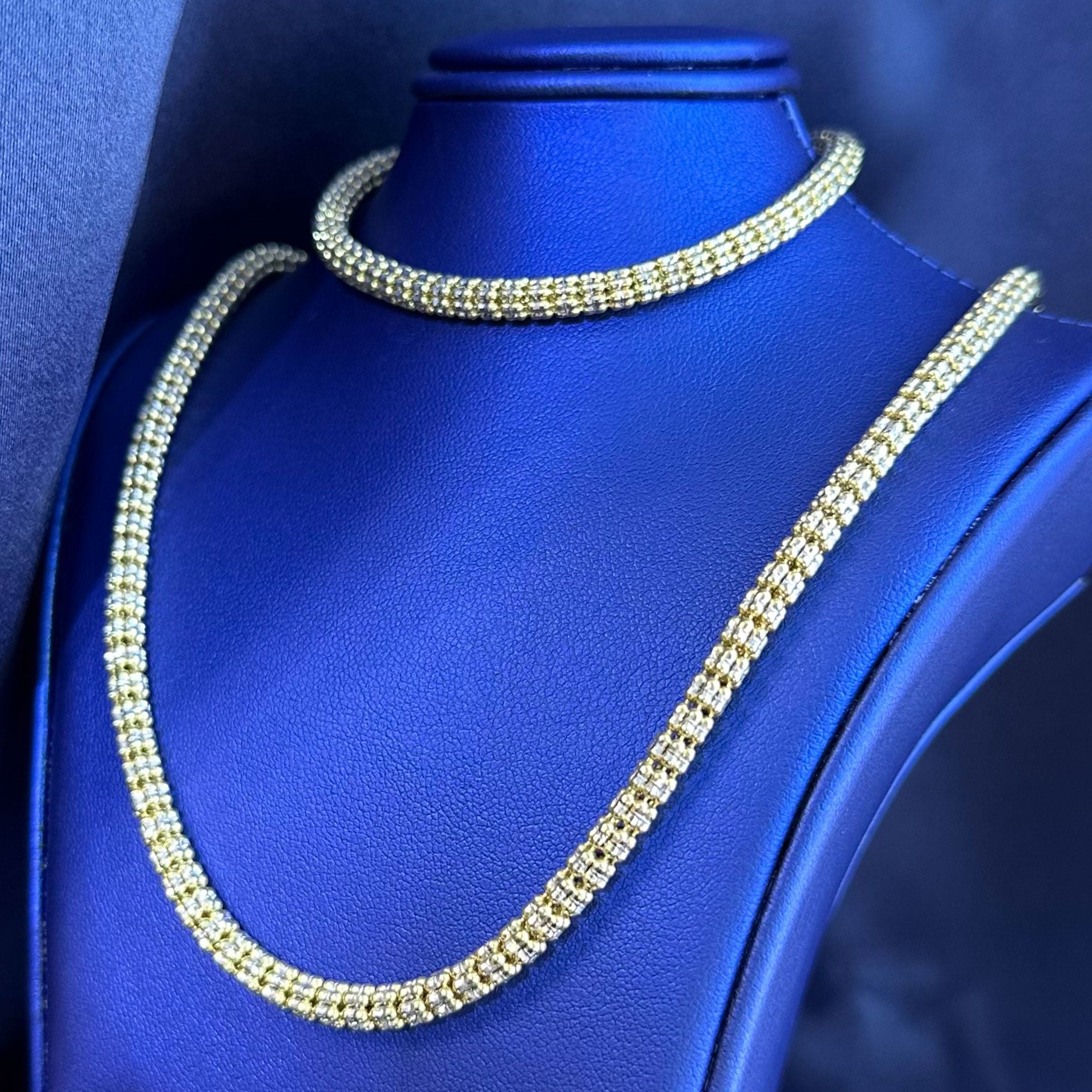 10k Two-tone Fancy Ball Ice Chain & Bracelet Set$3,775.00