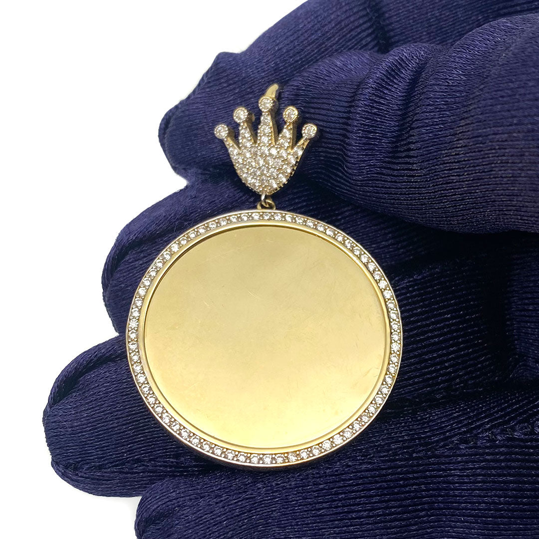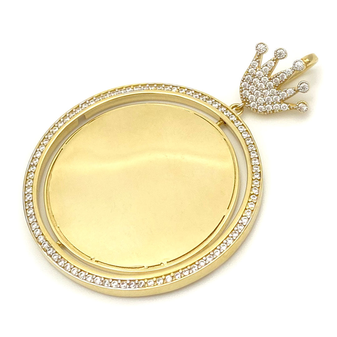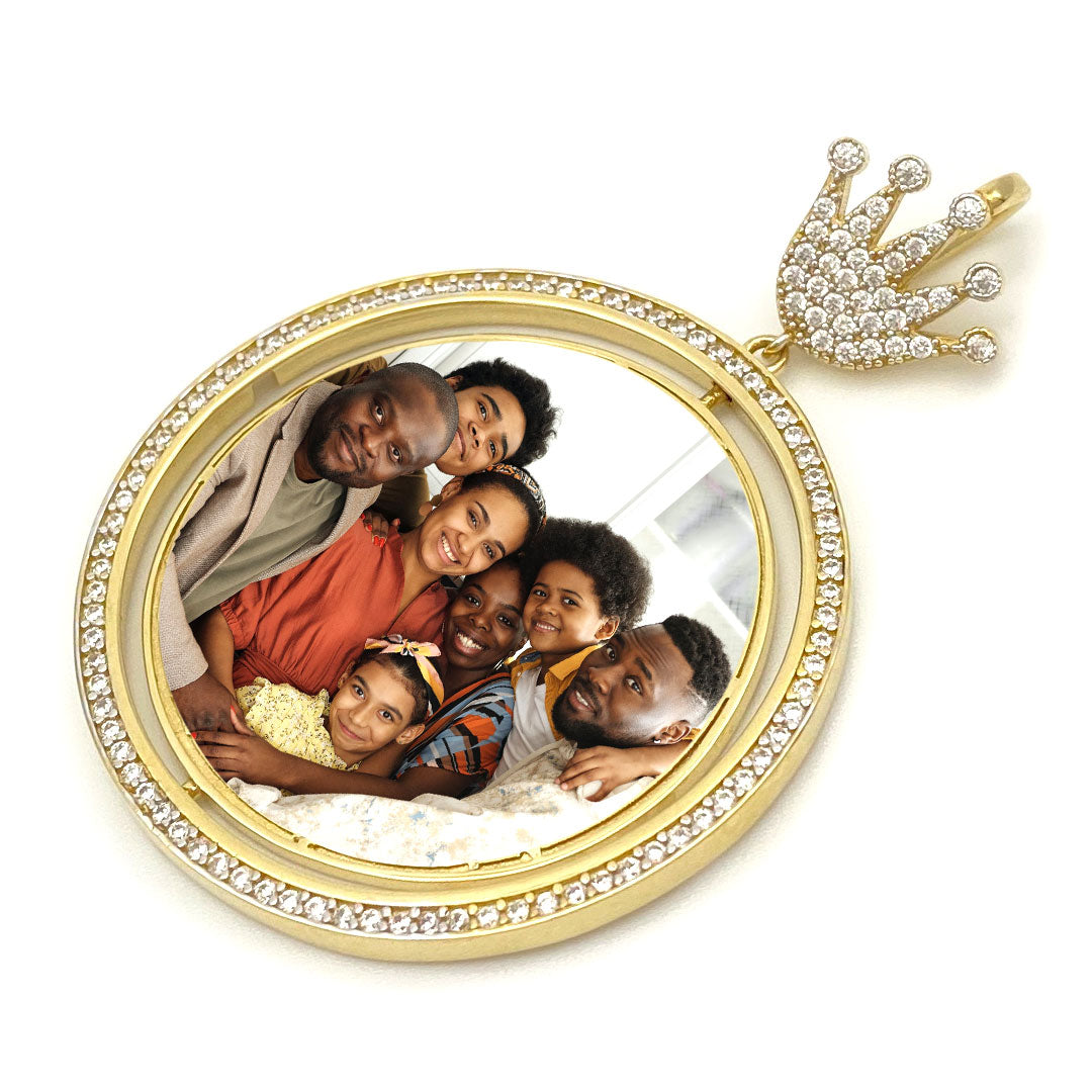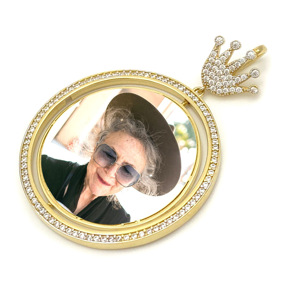 14k CZ Custom Round Rotating Double Sided Picture Pendant with Crown$1,835.00