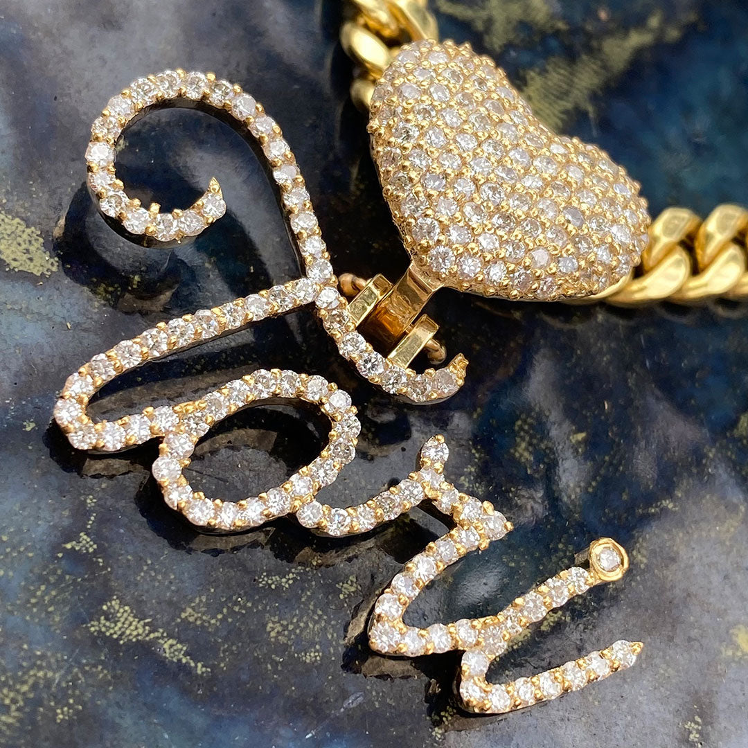 Custom Diamond Heart & Cursive Personalized Name Pendant