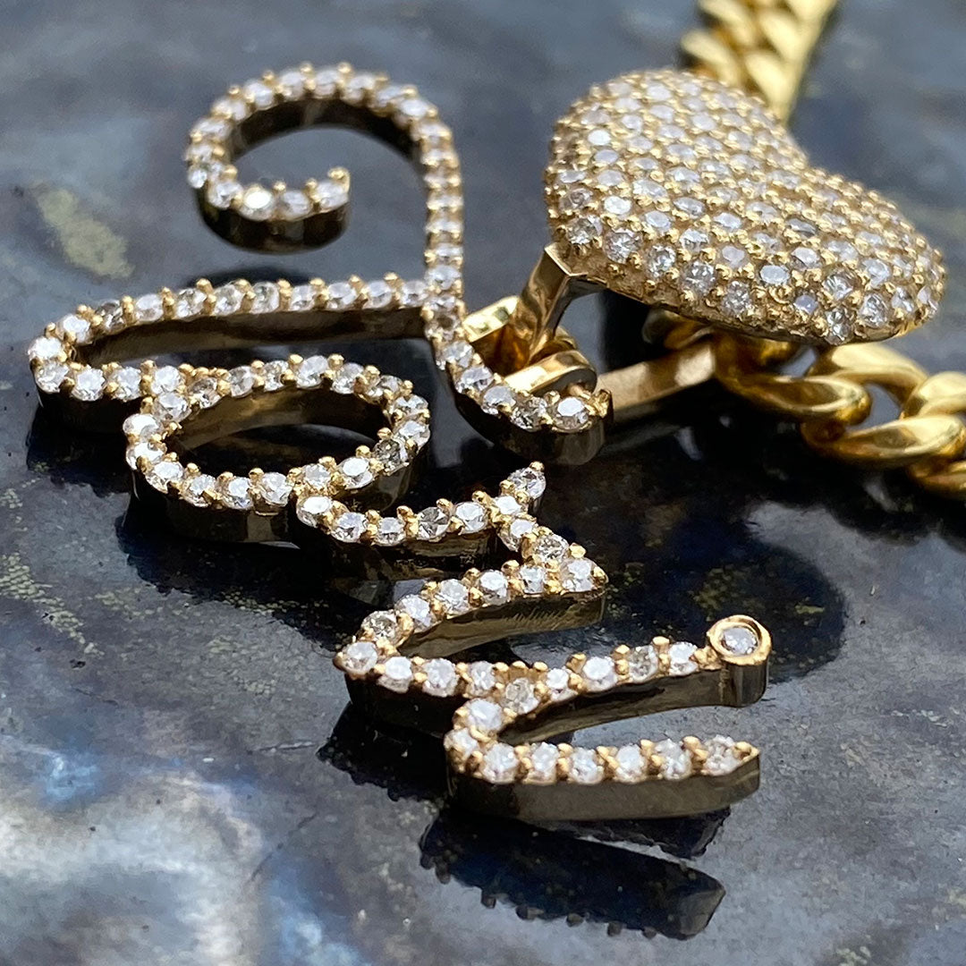 Custom Diamond Heart Puff & Cursive Personalized Name Pendant