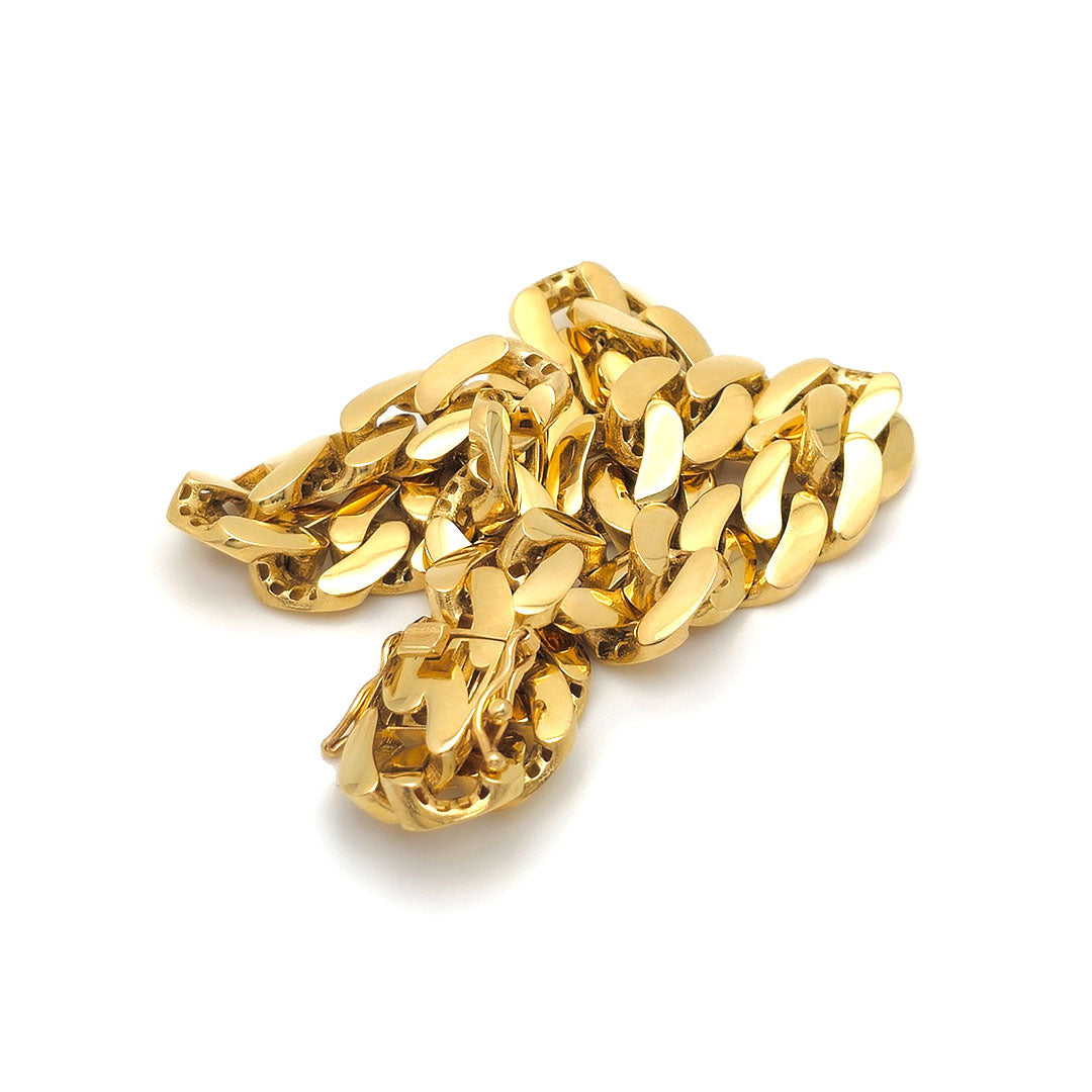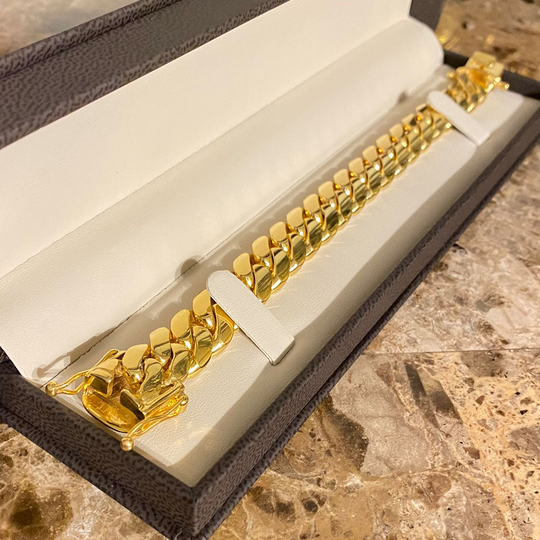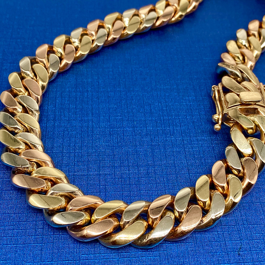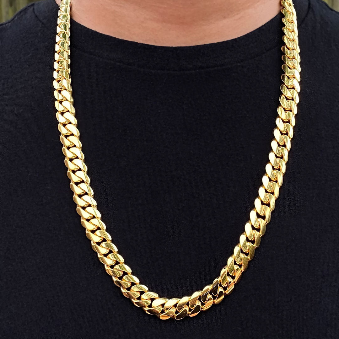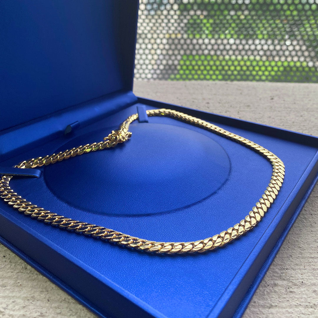 Solid Miami Cuban Links are a distinctive style of jewelry that has gained popularity for their robust design and versatility. These chains are meticulously crafted to order, ensuring that each piece meets the specific requirements of the customer. The handmade nature of these links allows for customization in thickness and size, catering to individual preferences.